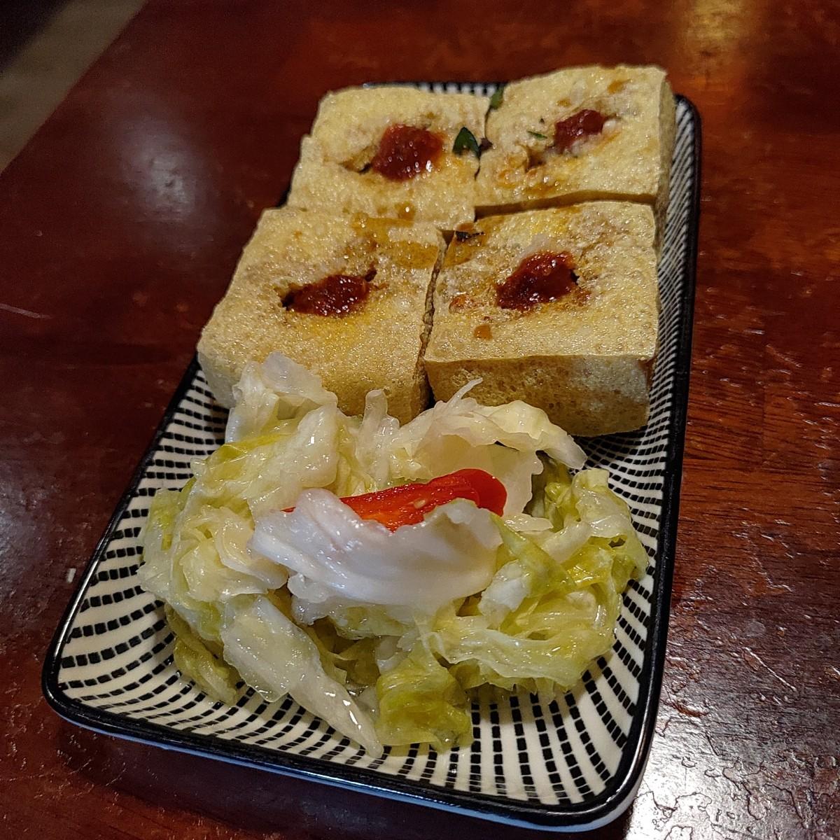 パリパリ臭豆腐(少し辛め):皮がカリカリに揚がっていて、臭豆腐自体も味がしっかりしていて、豆腐の中にスープがたっぷり入っていて、キムチ漬けがとても美味しいですよ~