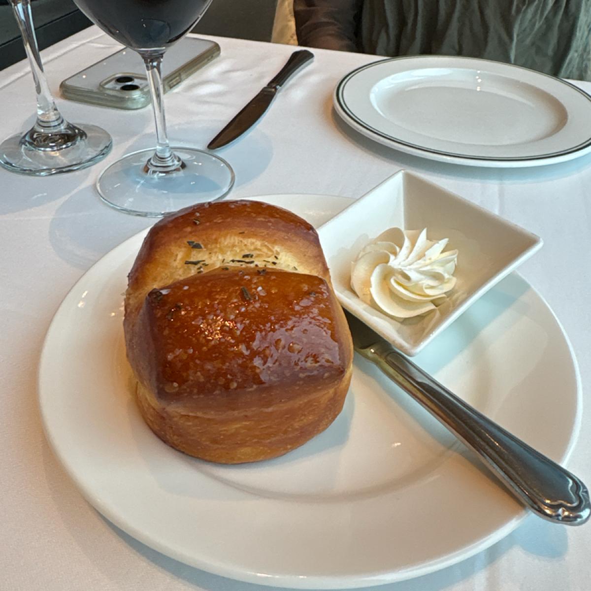 昼食には定番の骨付きリブアイを注文しました。熟成された味は家では再現できません。残念なのは、焼き加減があまり均一ではなく、一部は完璧でしたが、過熟の部分もありましたので、小さな残念さがありました。