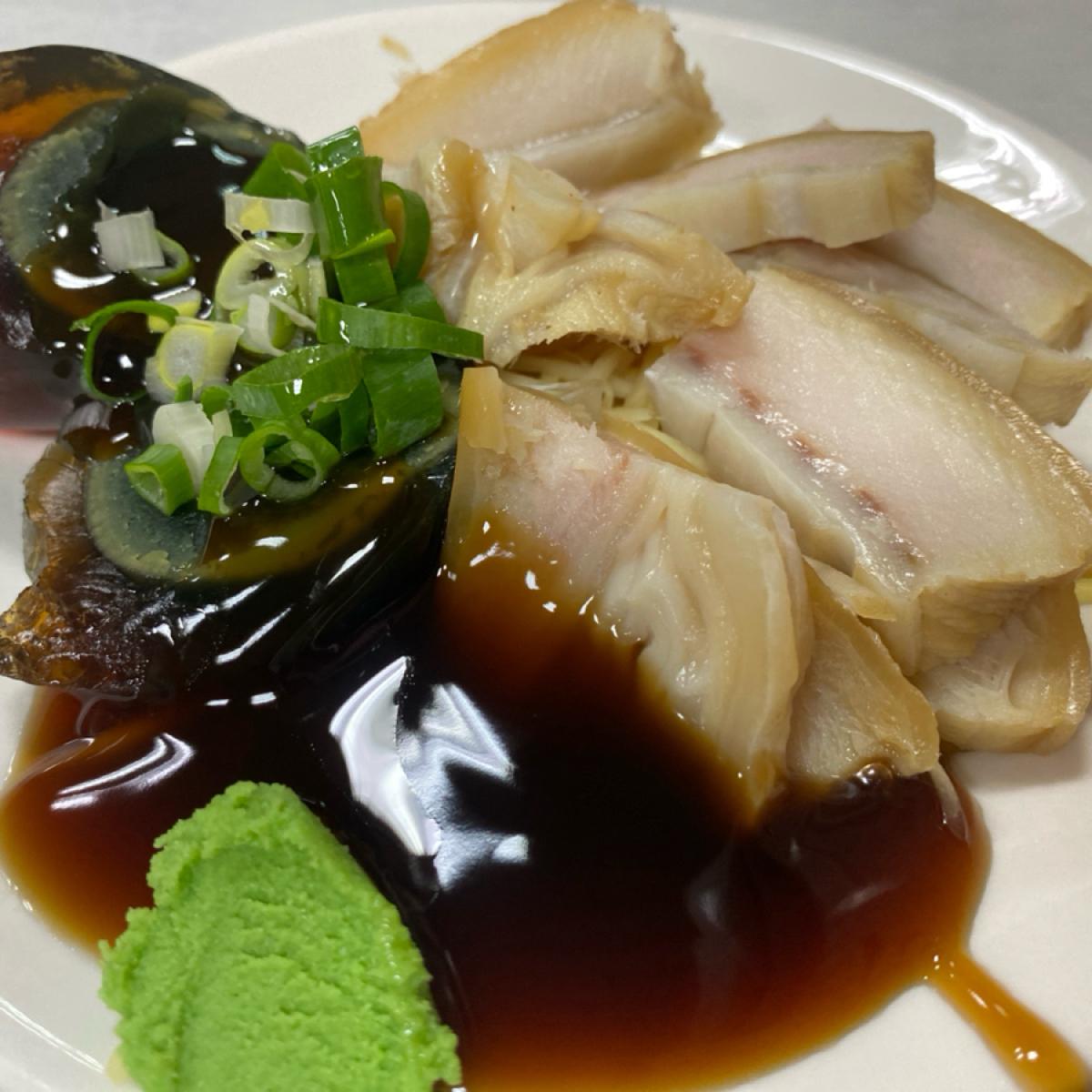 安いから普通のおかずかなと思ってたんですが、思ってたのと違って、豚の皮は口の中でとろけるし、サメも生臭みなくて、周りの肉も美味しかったです。口の中もよく整えられていて、肉のような臭みはありませんでした。