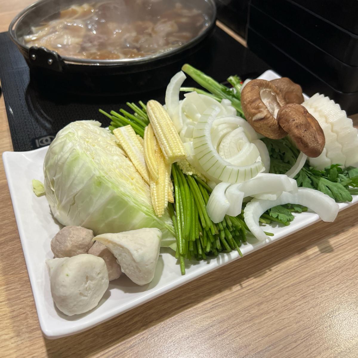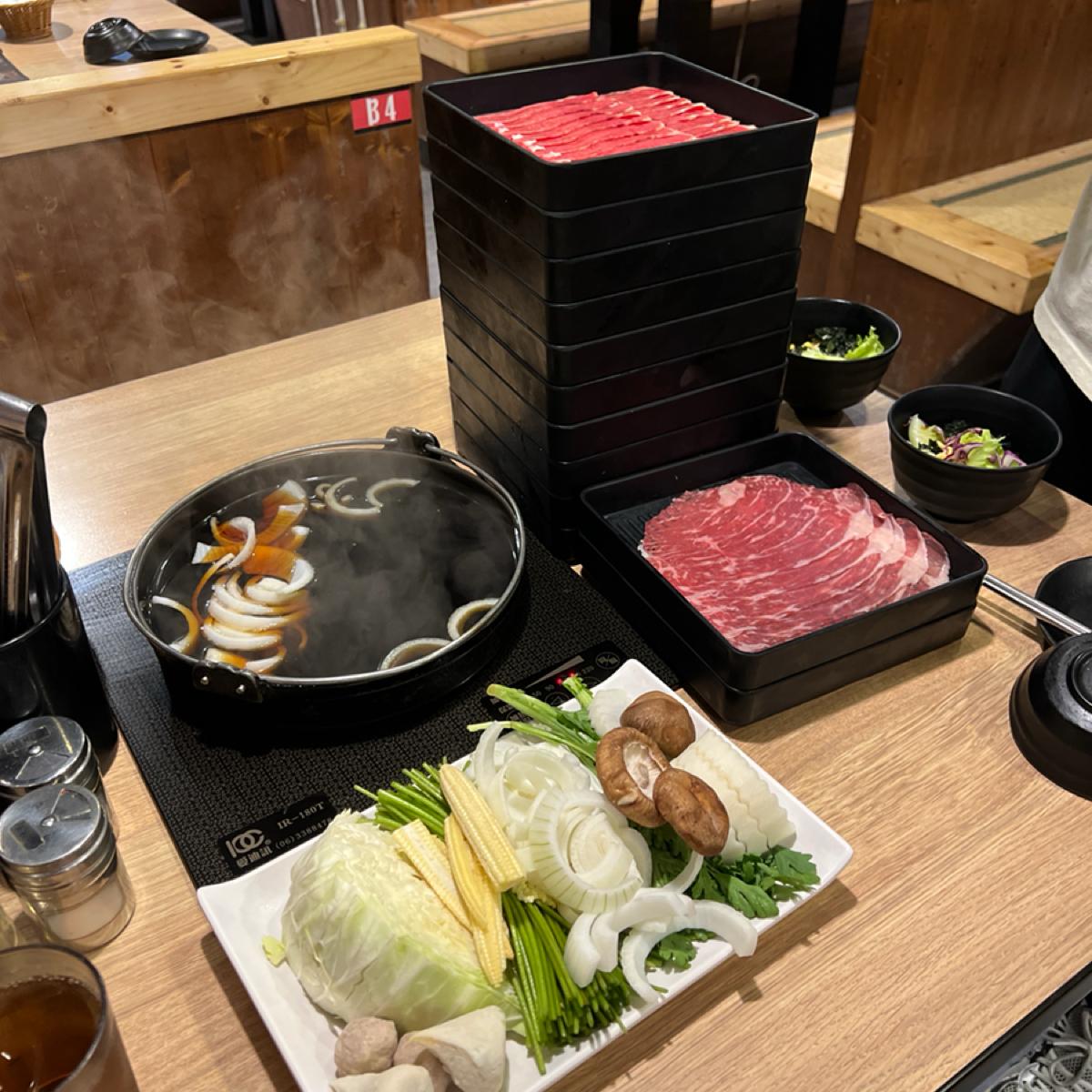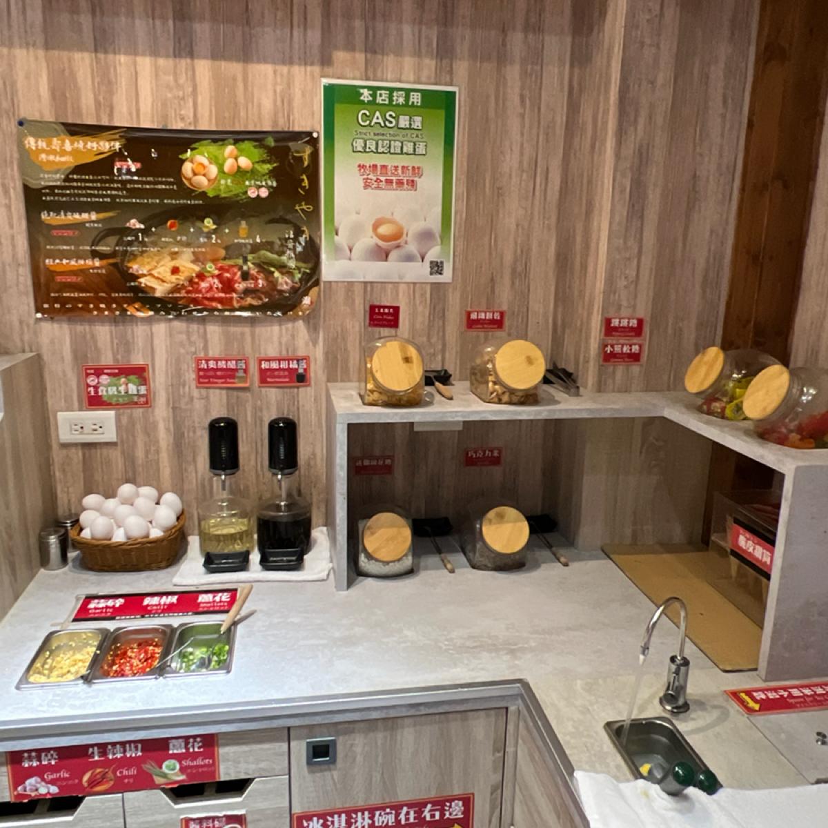 -他は一般的なすき焼きで、隣にソースや水があって、自分の好みに合わせて味付けができます。