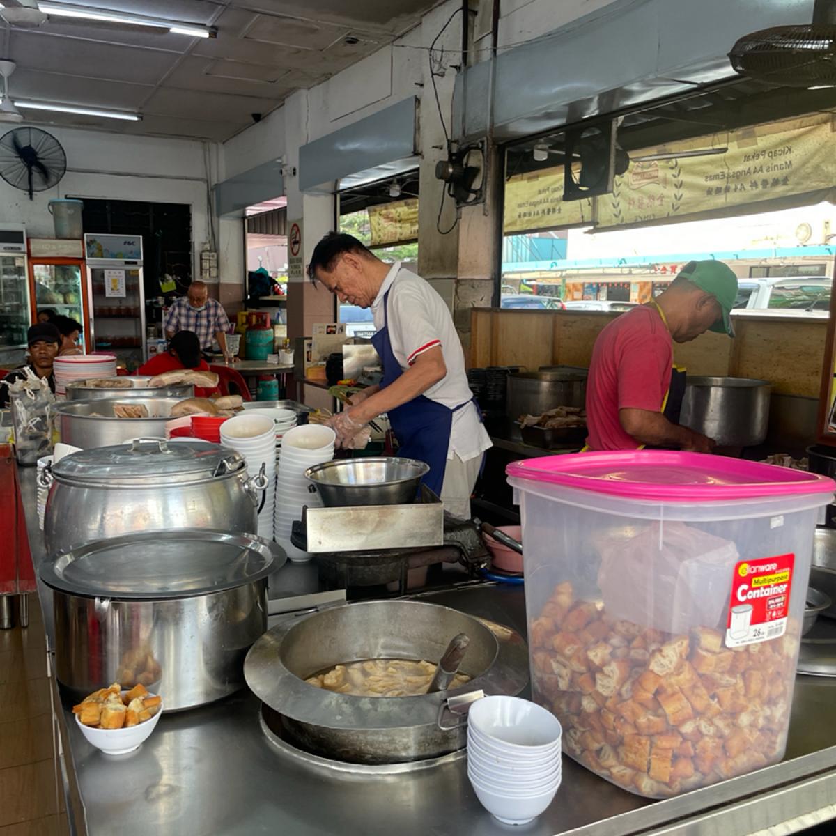 マレーシアの定番スナック「バクテー」は外せません。繁華街にある新記店は清潔で快適ですが、エアコンがないと少し暑いです。マレーシアのバクテーはマイルドな薬味で、朝から晩までいつでも食べられます。新吉の味は塩辛すぎず、とても美味しいです。