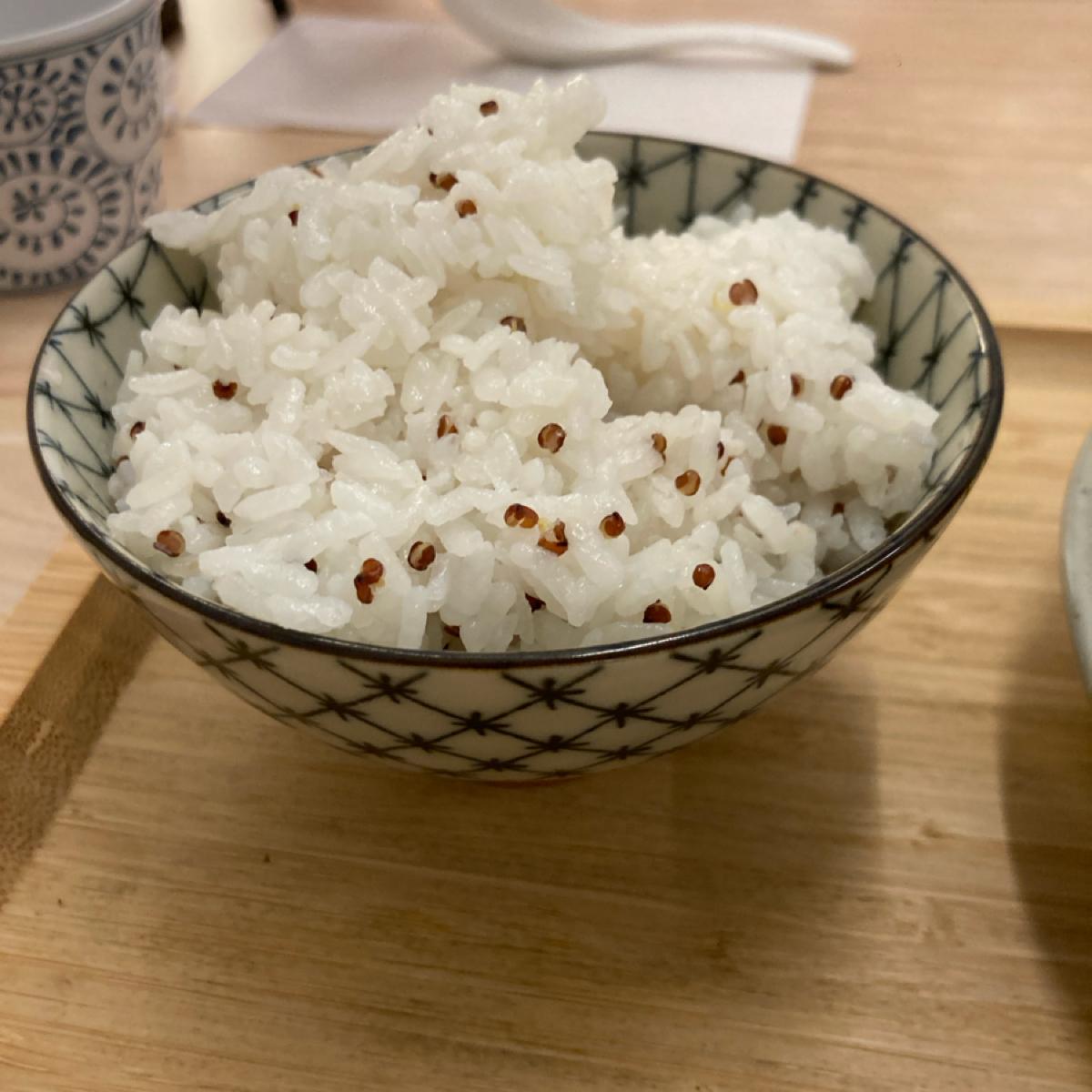 豆腐鍋にはご飯が付いていなかったので、赤キヌアの有機ご飯を追加注文しました。また、旬の野菜の冷菜も頼んだのですが、この日はオクラで、暑い夏にぴったりでした。