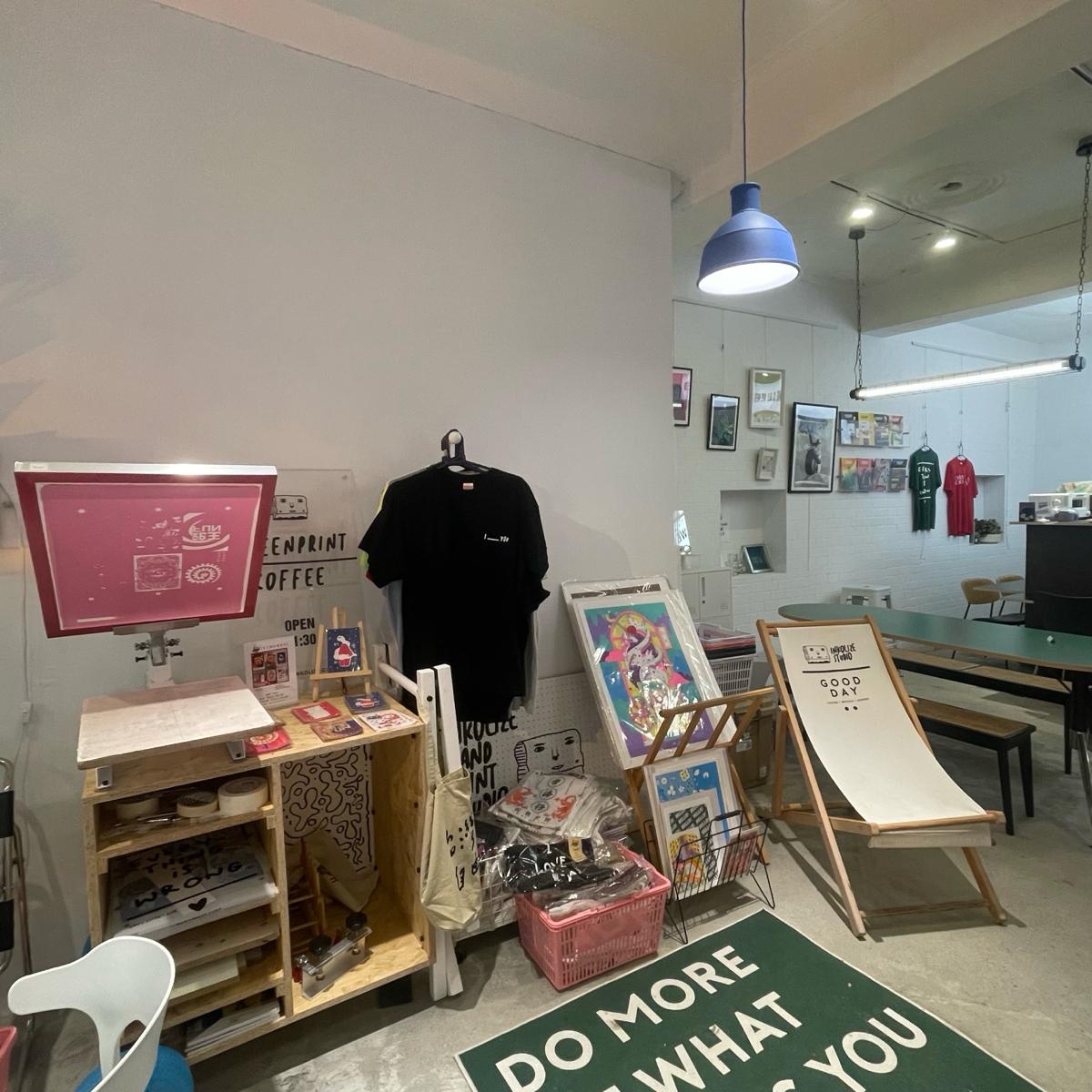 このカフェは香港の夫婦が経営しており、シルクスクリーンのスタジオでもあります。店内ではシルクスクリーン製品の展示・販売のほか、シルクスクリーンの講座にも参加できますよ!