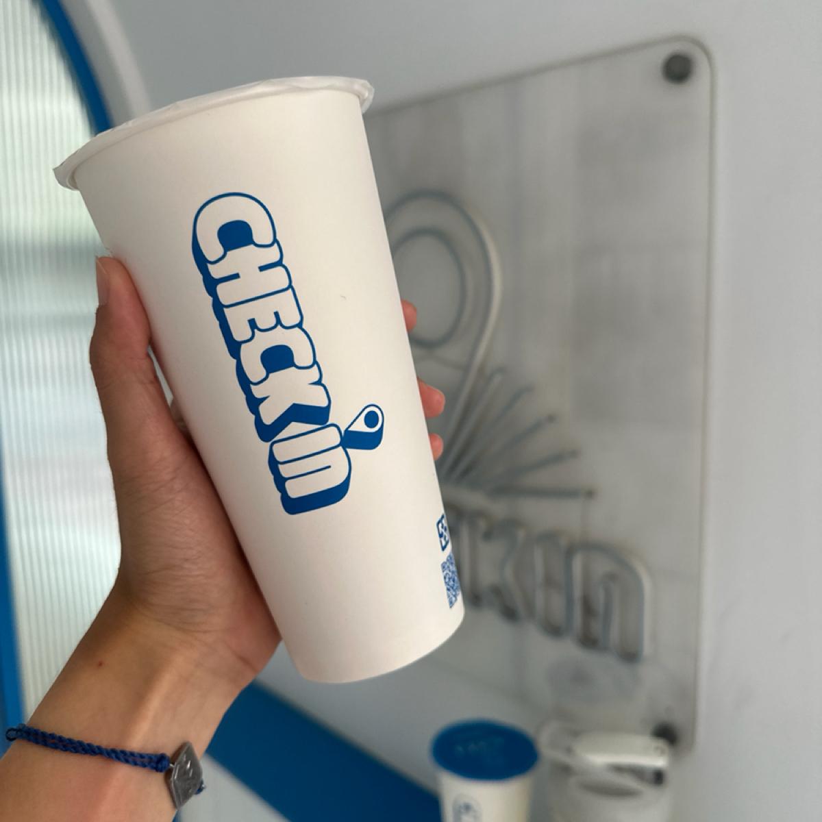 Check Inは2022年創業のパーソナルブランド飲料専門店です。店内は白を基調に爽やかなブルーをあしらった、海のような明るく爽やかで心地よい空間です。