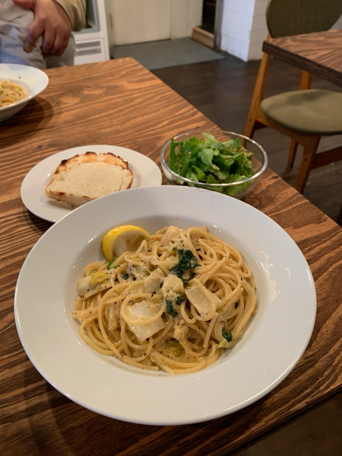 落ち着いた雰囲気で広めの店内でした。 12月4日にオープンしたばかりのカフェで、パスタランチセットもやっていました。パスタとパンとサラダが付いて1,100円なのでとてもお得で大満足でした。食後に飲んだコーヒーも奥深く美味しかったです。