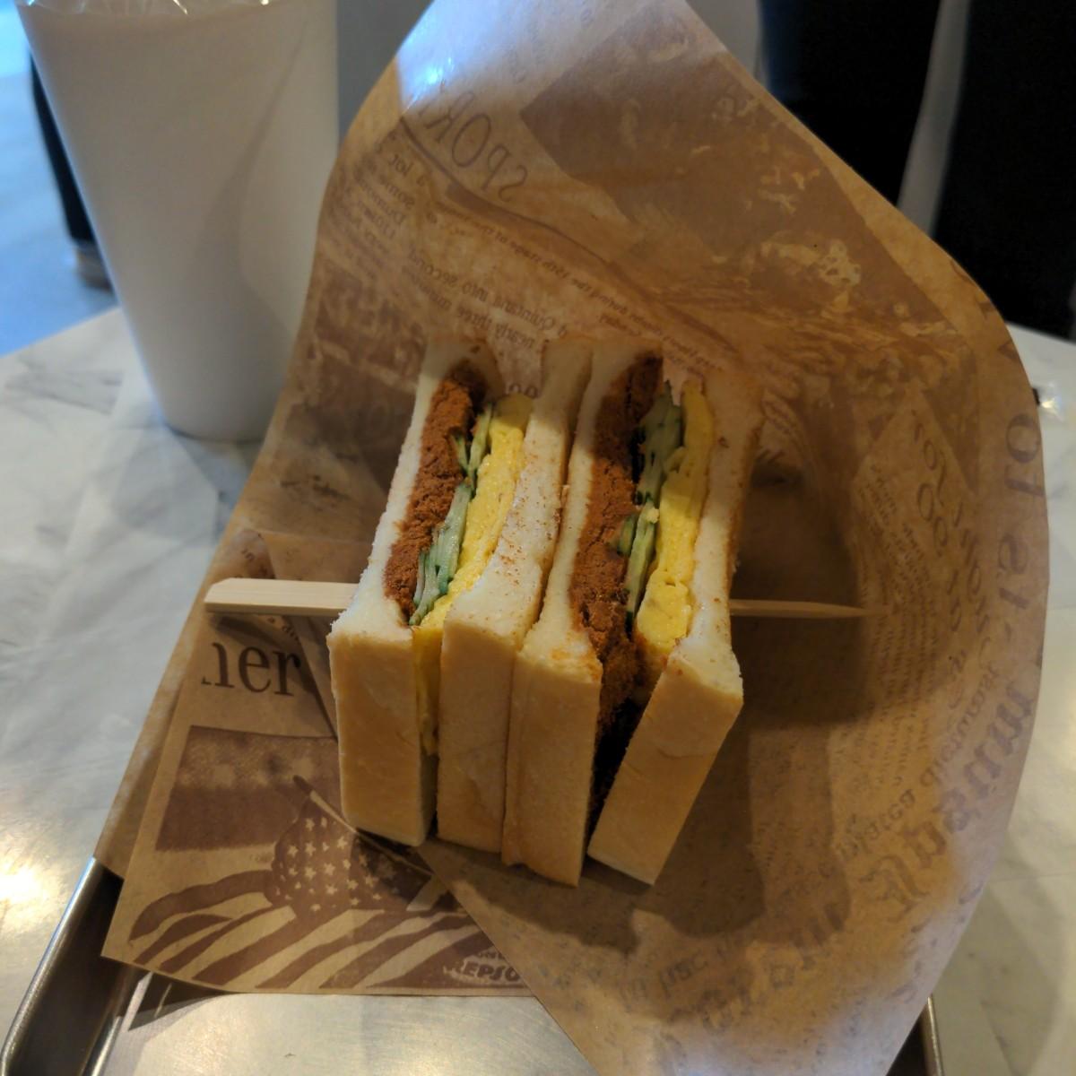 到着する前にストロベリートーストを注文しましたが、その場で他の食事をしようと思い、誤ってアールグレイのティーバッグで作ったアールグレイミルクティーを2杯注文しました。どの袋の紅茶なのかよく見てみると、とても香りが良く、フレッシュミルクの口当たりが滑らかなフェアリーミルクティーは、茶葉とフレッシュミルクを煮出した紅茶で、甘みがしっかりあります。食事は、日本の焼きそばを注文しました。麺は細めで、塩辛すぎません。次に、スフレとミートフロスのサンドイッチが自家製です。側面にカットされた生トーストが少し入っていて、柔らかい食感で、スフレは塩味があり、フロスは香ばしくて大好きです。