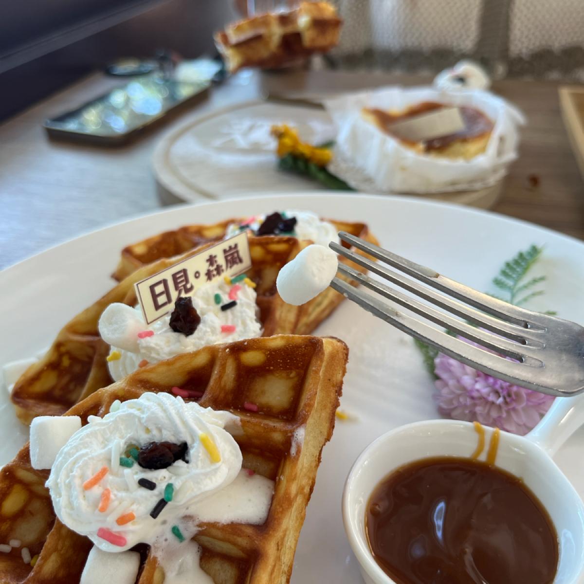 ワッフルはしっかりと焼き上げられており、外はカリカリ、中はふんわり、キャラメルも甘すぎず、全体的にはさっぱりとした味わいです。