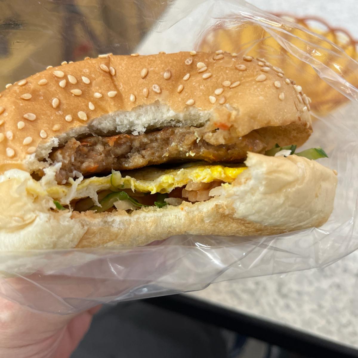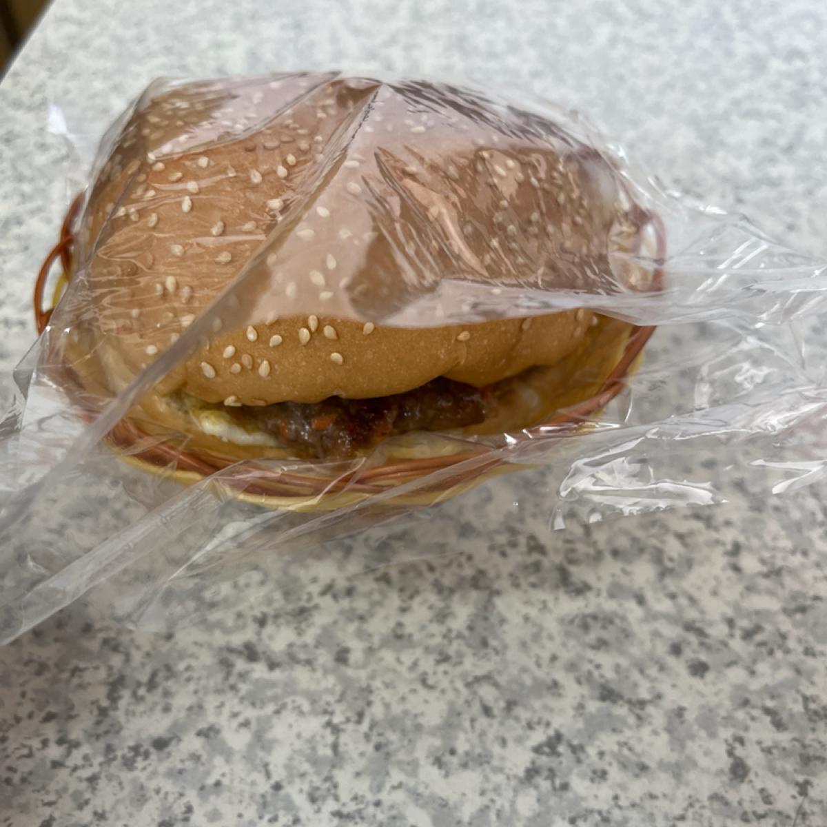 お食事について ハンバーグエッグ NT$45 皮は少しカリカリに焼かれており、ソースが少なく肉とパンの味がしっかり味わえます。