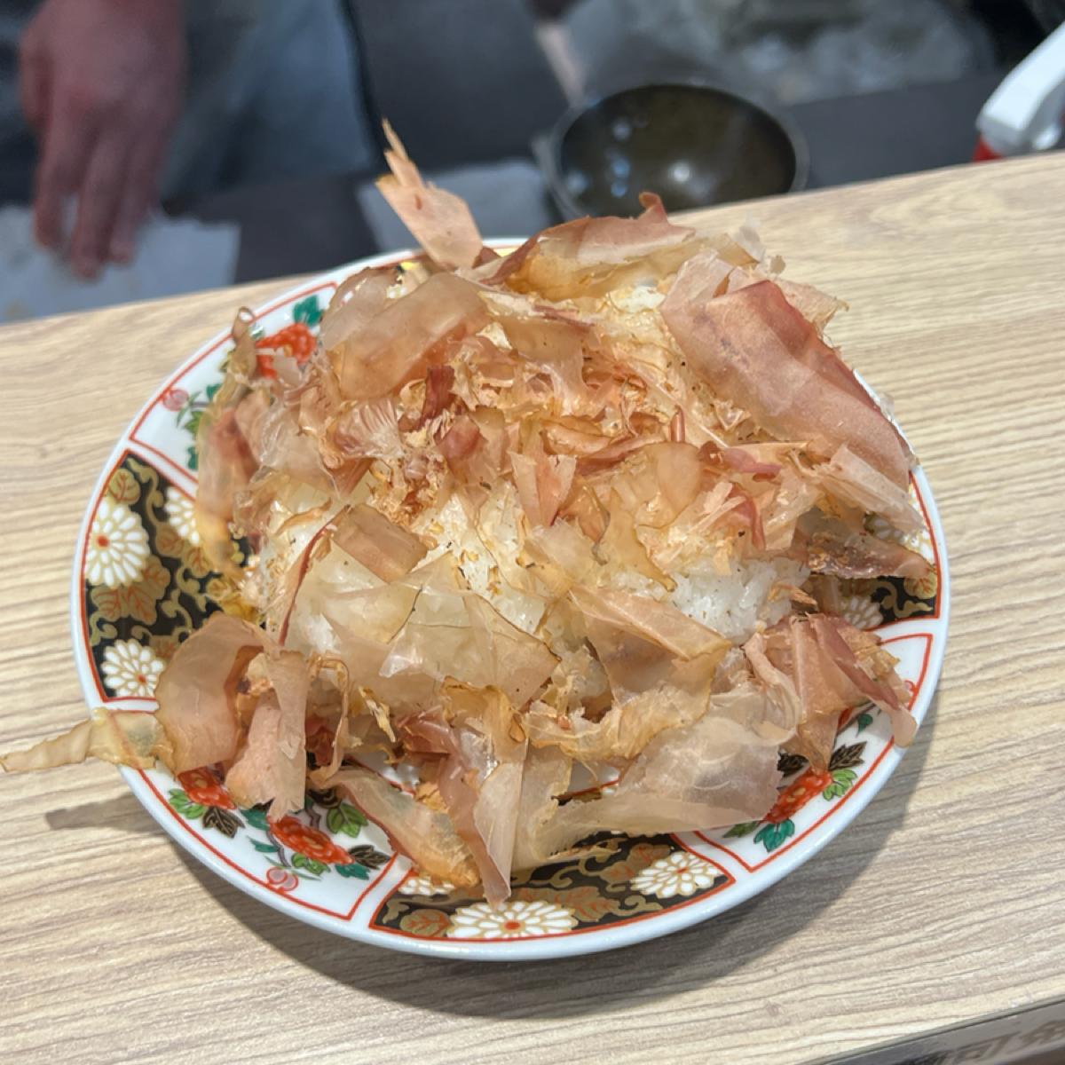 🍙奧村式おにぎり($120)は見た目が良いですが、鰹節がしっかりかかっていて、中にはチャーシューが入っています。実際に食べると普通な感じでした。