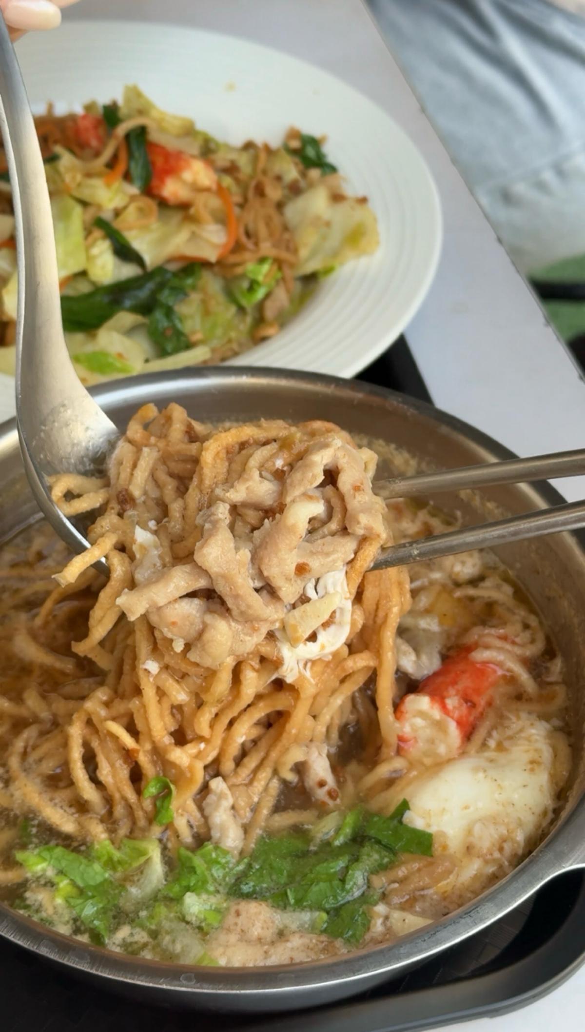 鍋焼き意麺の味は標準的で、スープと麺(やや柔らかめ)は普通です。中には卵と肉そぼろ、そして一つの鍋料理の具材が含まれています。もし主に鍋焼き意麺を目的にしているのであれば、特に目立った特徴がないと感じるかもしれません。