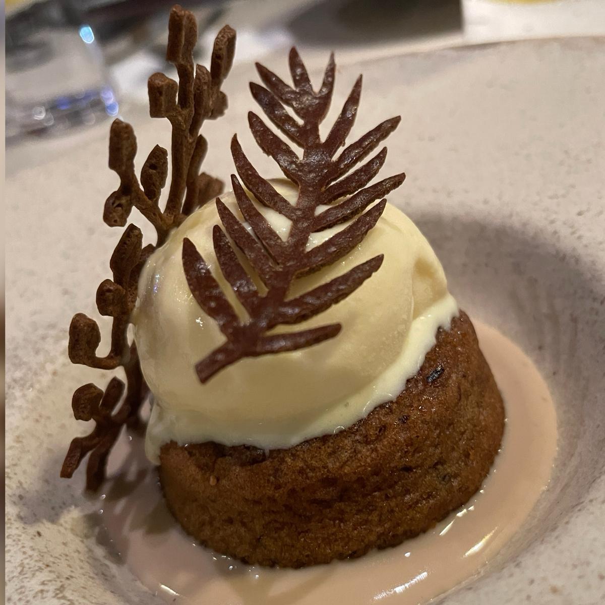 ホットケーキの上にアイスクリームが乗っているので、早く食べなきゃいけませんね。ユーカリはオーストラリアでは一般的な食材ですが、全体的には味に大きな影響はないように思えます。