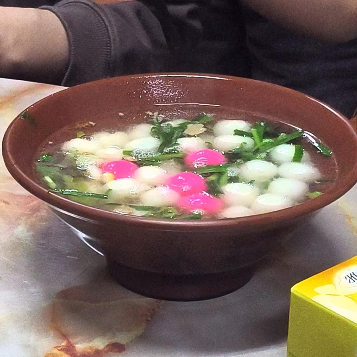 白い麺の味は普通で、平たい麺を頼むべきでした。