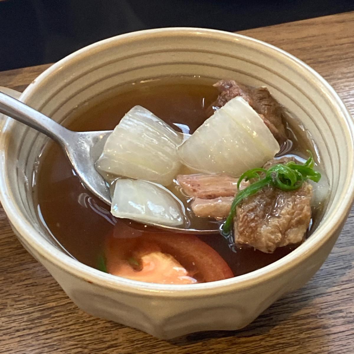 牛肉スープは外の清煮牛肉スープを真剣に再現したもので、牛肉もたっぷりで柔らかい。鶏肉のクラムチャウダーは超うまい!!濃厚で、パンと一緒に食べたくなります(笑)。