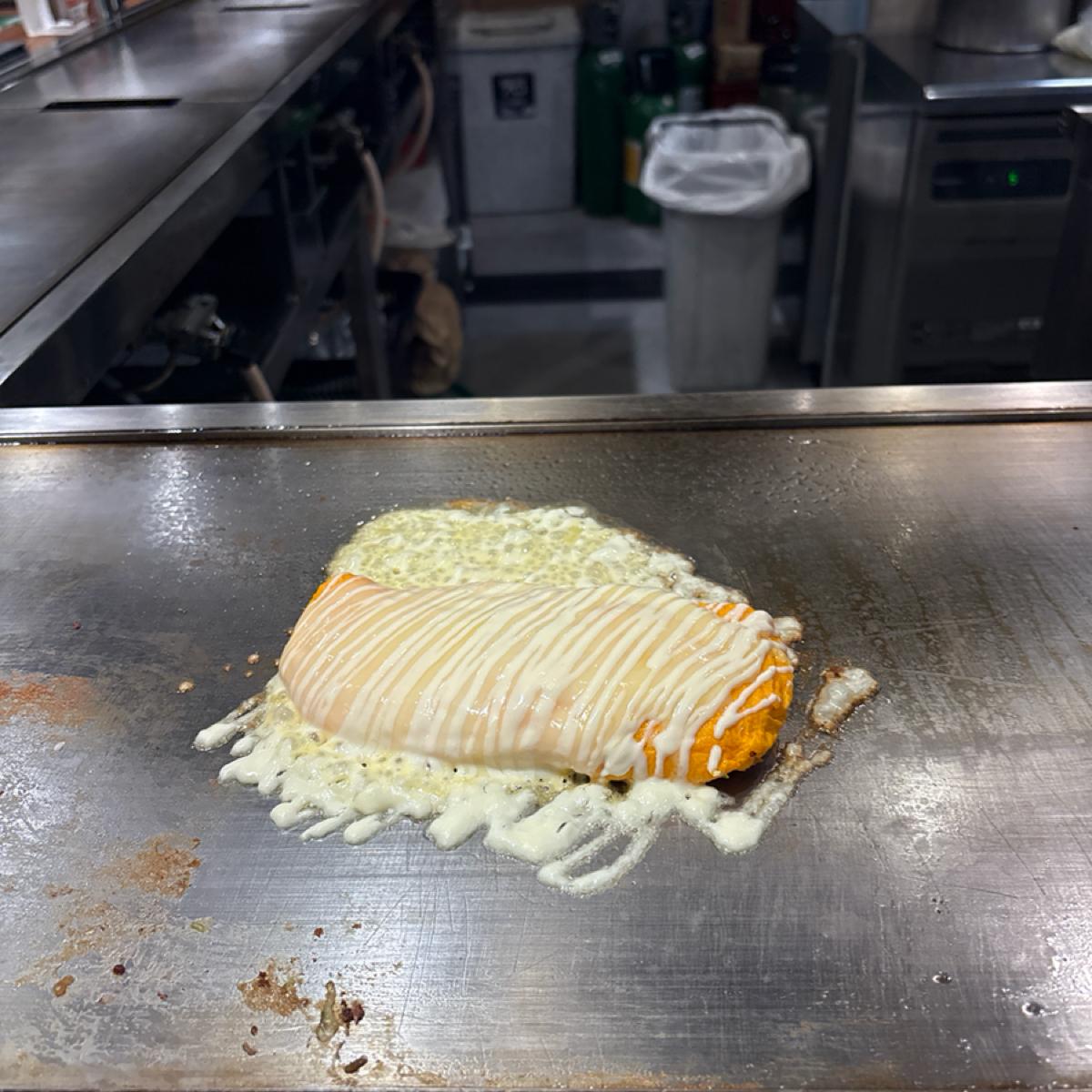 真っ白なマヨネーズたっぷりの状態で持っていただき、目の前で明太マヨで乳首を書いてくれました❤️