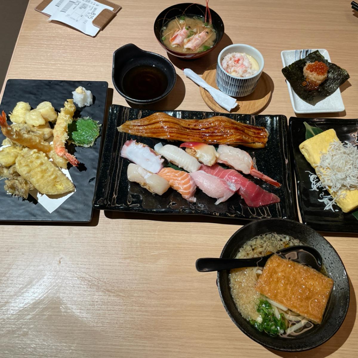 6/28の午後はラッキーなことに開店半額メニュー(極神松盛り合わせ)を並ばずに食べることができました。 価格:チェーン店の回転寿司より少し高め 原材料: とても新鮮です グラミー卵焼き:甘め かに茶わん蒸し:並 湯葉うどんと天ぷら:回転寿司チェーン(win) 寿司飯:伝統的な白米の酢飯ではなく、非常に特別なものです。