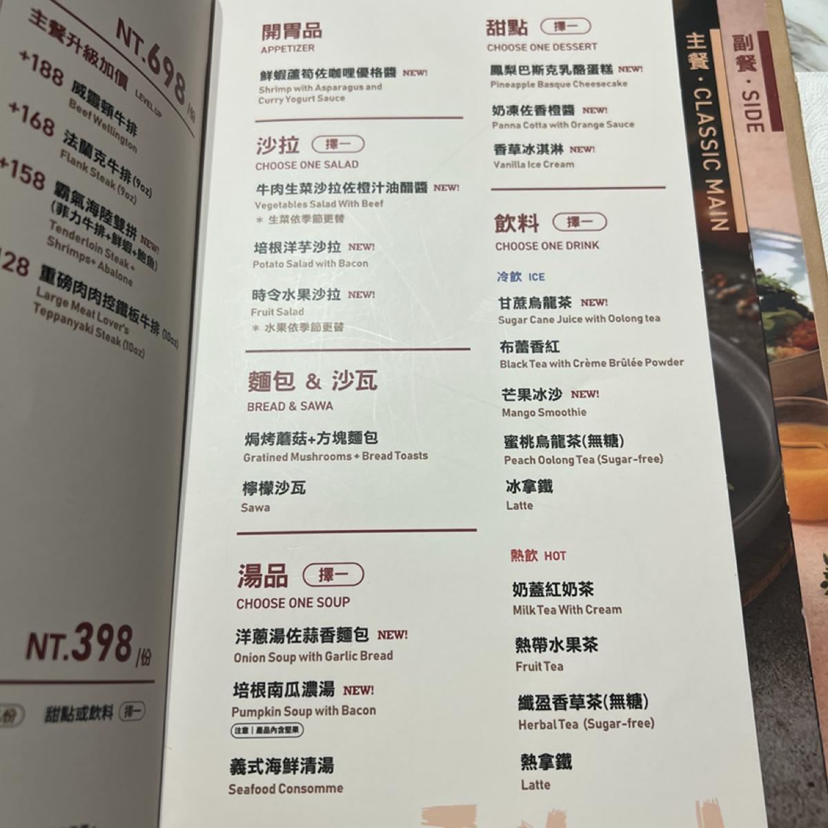🔹クラシックセット NT$698(メインディッシュ:フレンチカナール胸肉)