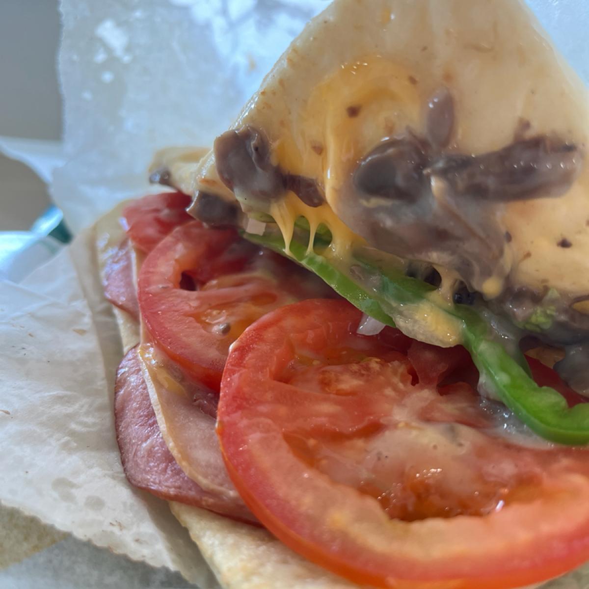 私は新フレーバーの濃厚マッシュルームチーズ、お好みのグリルチキン、そして無糖の紅茶を注文しました。