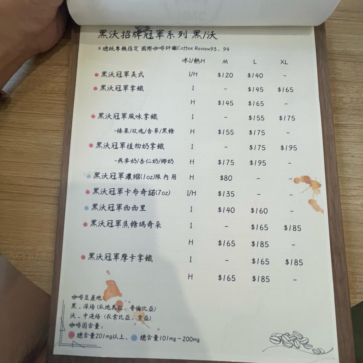 チャンピオンラテを飲んでみると、本当に違うことが分かりました。チャンピオンラテを注文する際、オーナーは深焙煎の豆(より濃厚)で良いか聞いてきました。私たちは中浅煎りを選びました。一口飲んでみると、果実の香りがゆっくりと広がり、豆には焼きたての香りがありました。私はコーヒー専門家ではありませんが、盲飲でどちらがチャンピオンラテかを当てることができました!(聞いたところによると、黒沃のチャンピオンラテは大統領専用機指定だそうです)