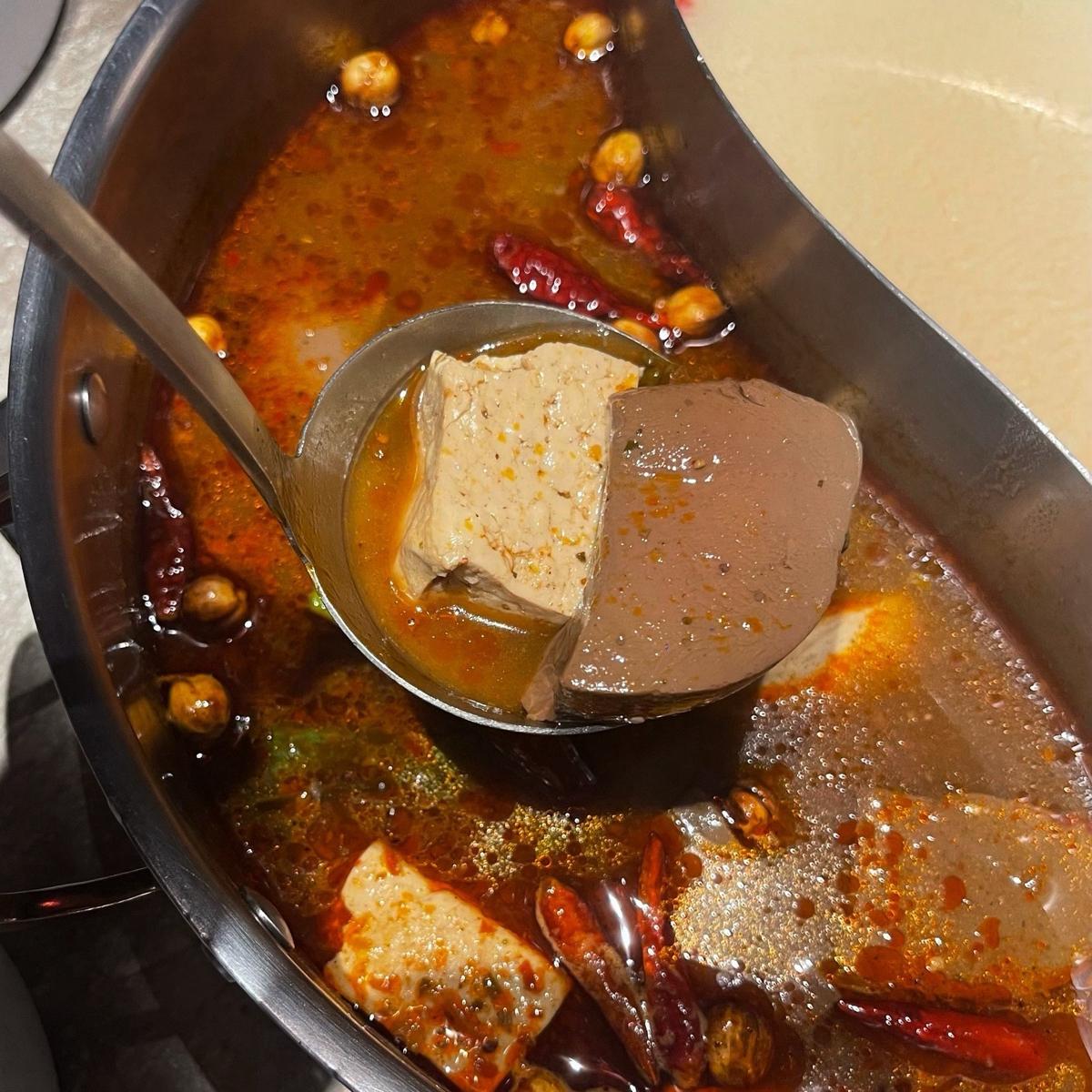 鴨の血と柔らかな豆腐がスープを吸って、やみつきになります。