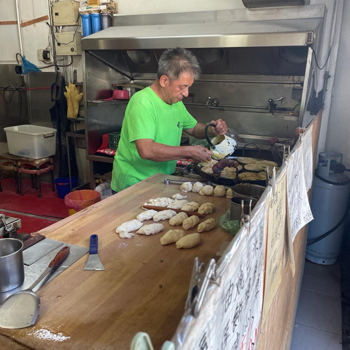 すべての灌蛋餅は手作業で生地を伸ばし、胡椒を塗り、卵を入れて、焼き上げるもので、手を抜かず丁寧に作られています。