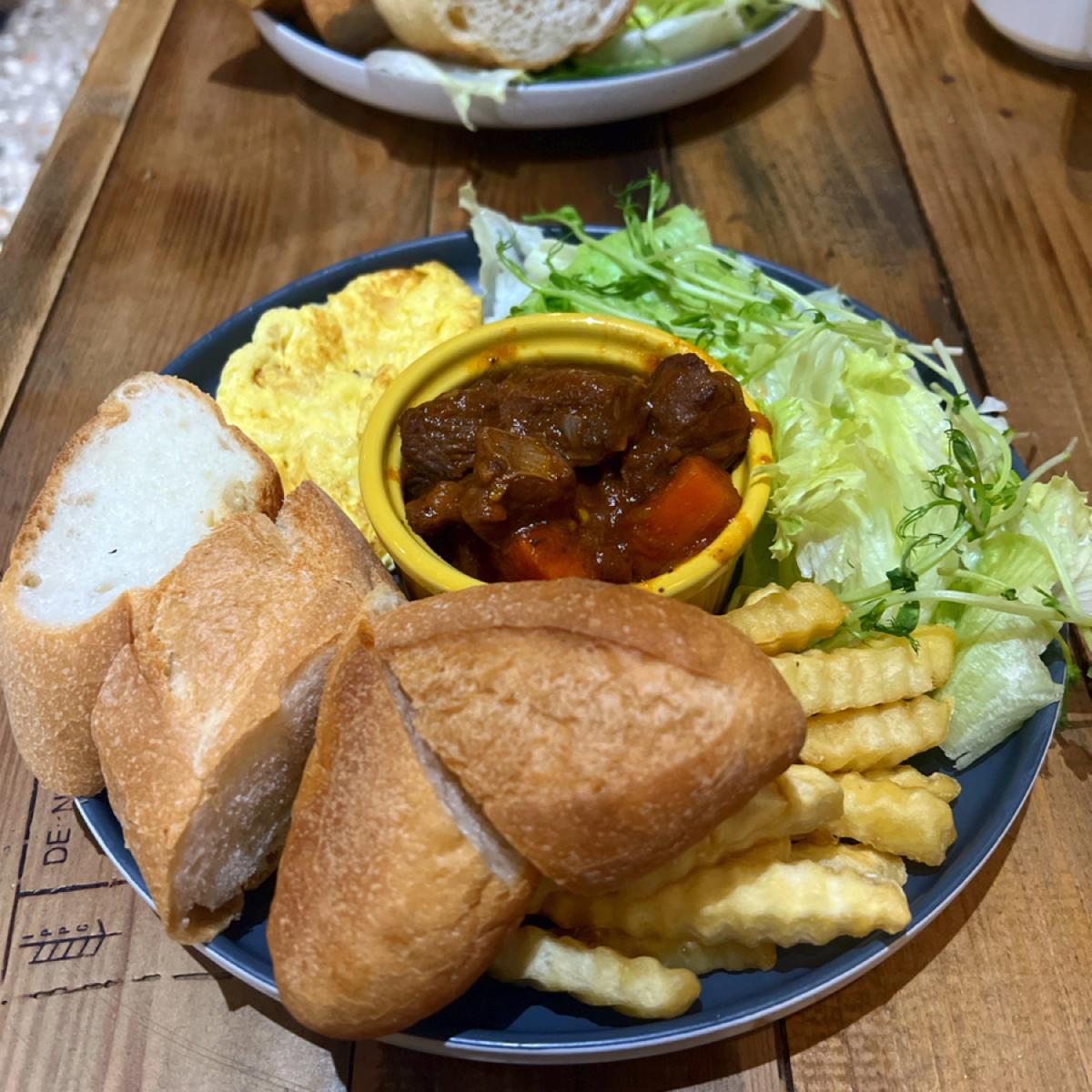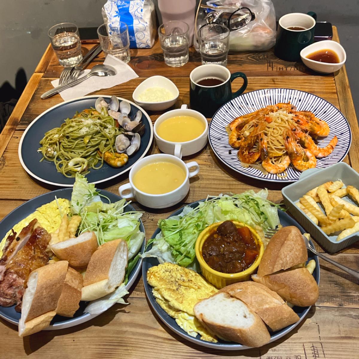 赤ワイン煮込みビーフとガーリックスパイシーエビパスタは