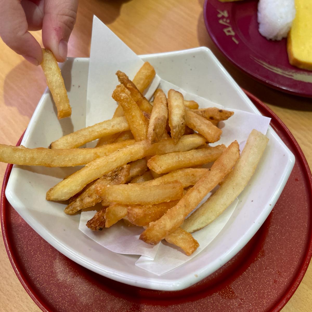 到着したら、さっそくフライドポテト、卵焼きにぎり、エビフライにぎり、サバにぎりを注文し、食後にはミルクアイスを食べます👍