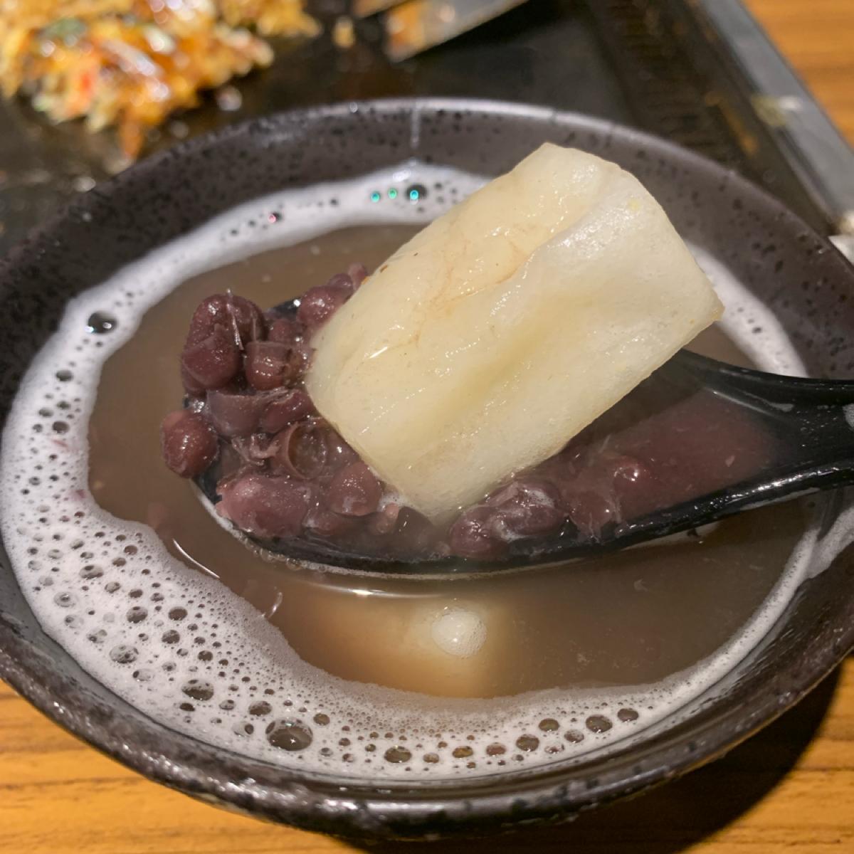 最後に出された小豆餅汁は温かくて甘いものが主体で、汁はあっさりしていて、餅の表面は少し炙ってはいるがカリカリではなく、盛り付けも普通でした。