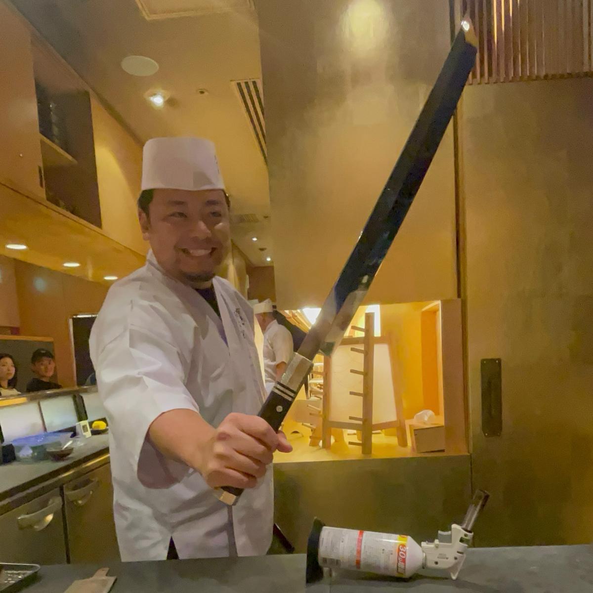 シェフ本人はその包丁をとても誇らしげに持っています。