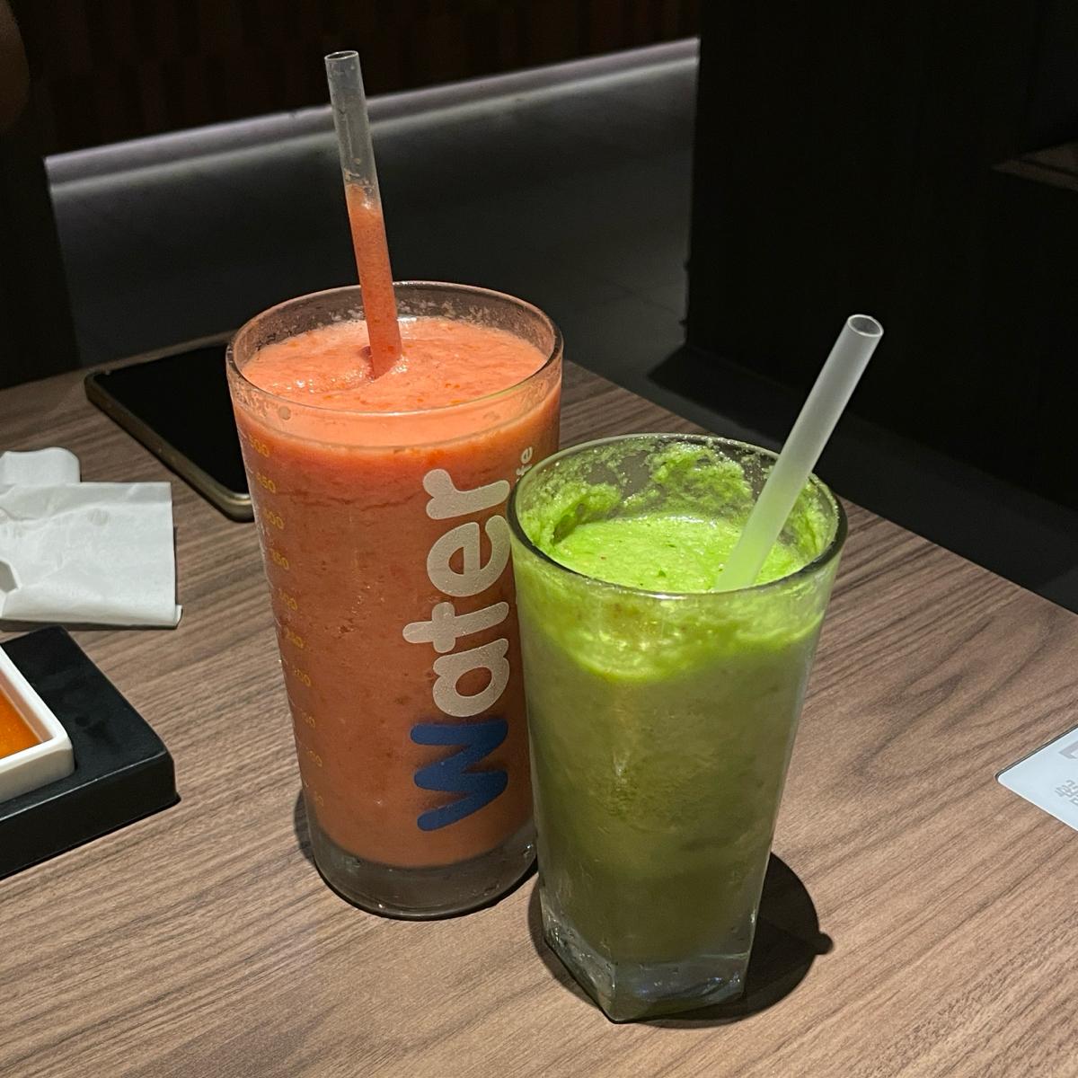グリーン野菜ジュースは繊維が多く、数口飲むと残りがほとんどになってしまいました。美味しいですが、次回は頼まないかもしれません。