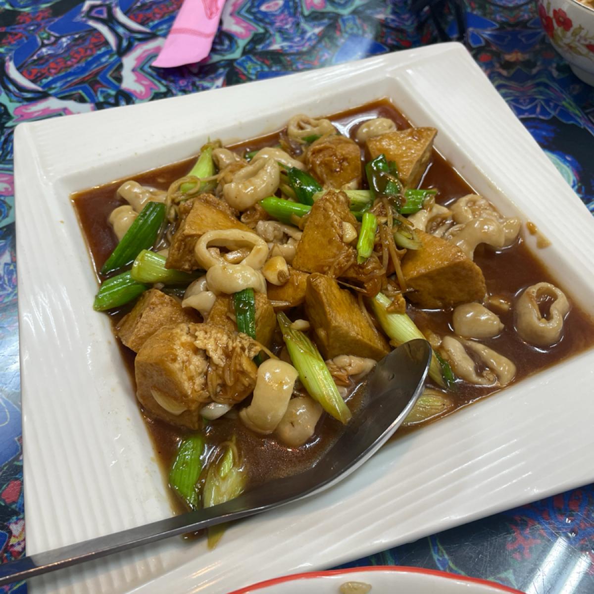 🫚生姜風味の大腸と香辛料豆腐 $280
