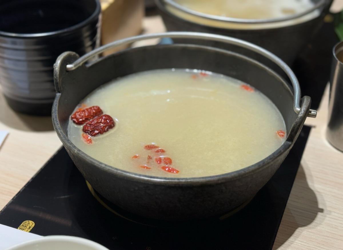 まずは鍋のスープです。彼らのスープは非常に美味しいです。私が頼んだのは、ネットで最もオススメされていた「広東風胡椒豚骨スープ」で、胡椒の香りが非常に濃厚です。この店がこんなに臭いのは、この鍋のおかげかもしれません(笑)