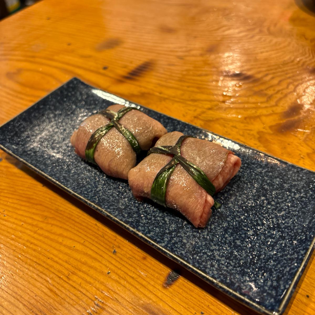 縛ったタンの中にネギソースがたっぷりでさっぱり美味しかったです🐮
