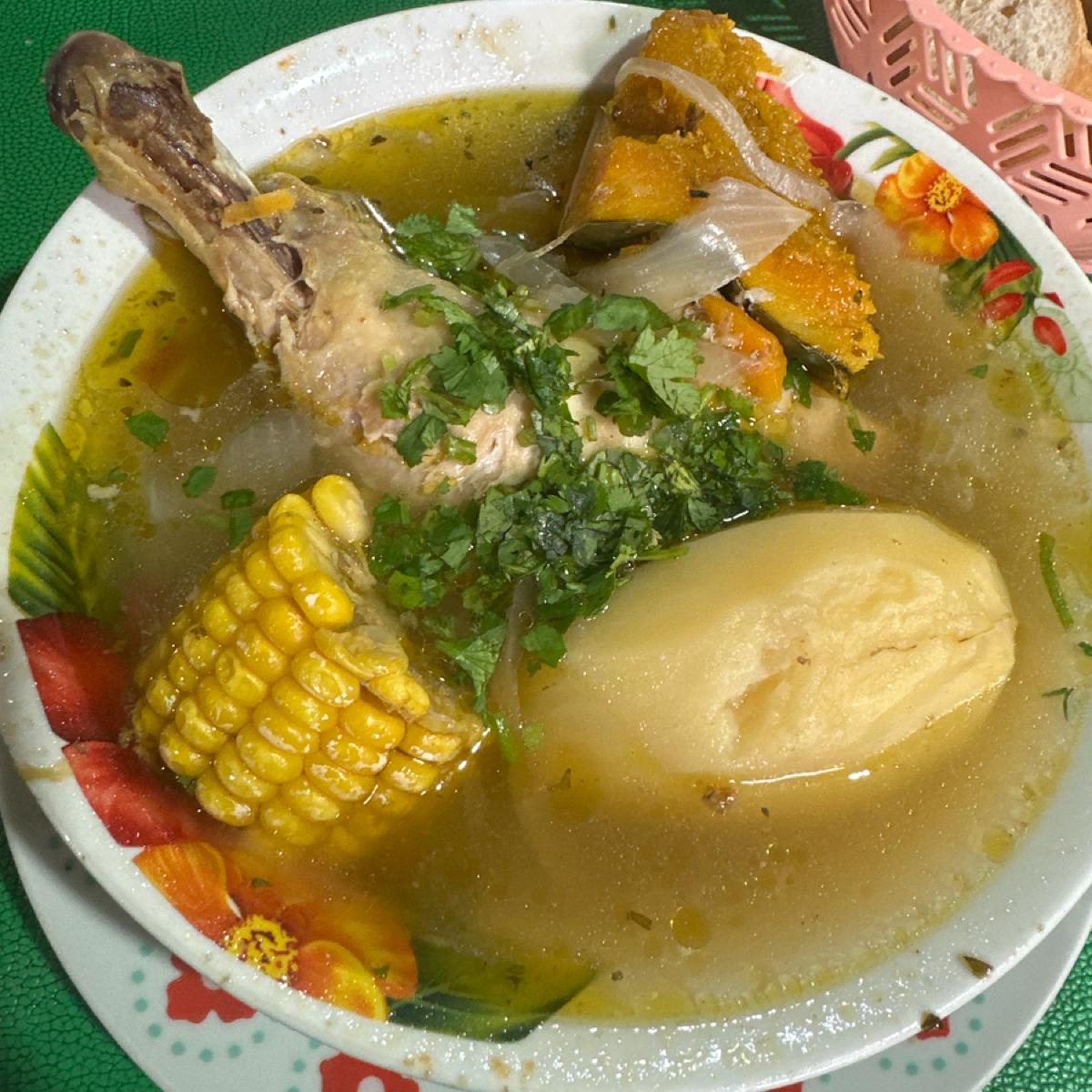 前回も言いましたが…たくさんの種類の野菜を使って料理しています!野菜の自然な甘みがしっかりと伝わってきて、豆とご飯を加えて…最後に柔らかくなるまで煮た鶏モモ肉を添えて!食べる前にコリアンダーをふりかけます〜