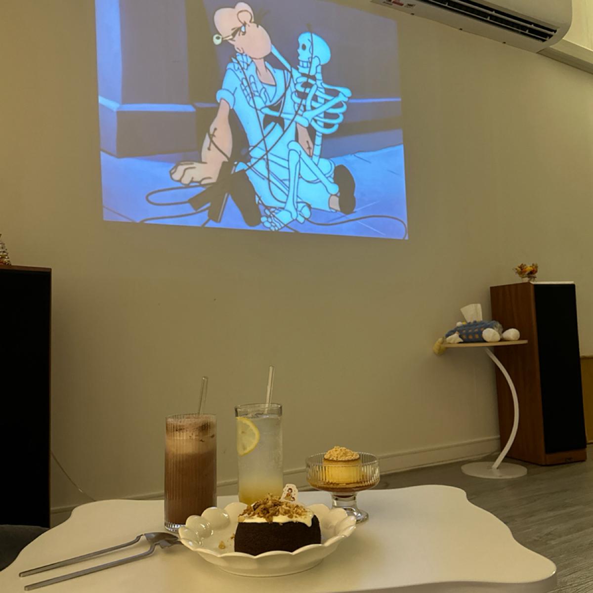 ラウンジチェア + 大型プロジェクターでドラマを視聴