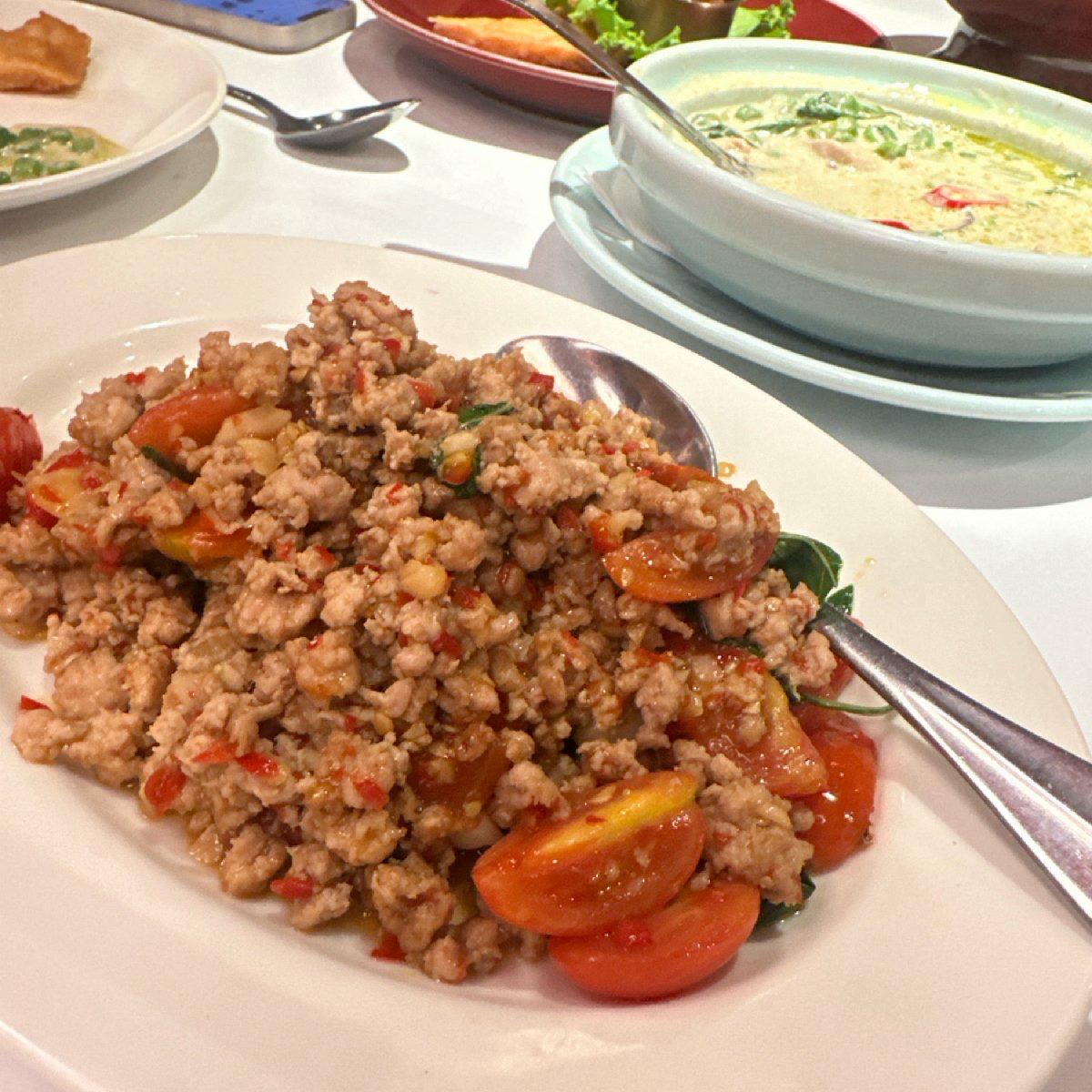 実は #大包肉 のコンセプトで、豚ひき肉をタイ唐辛子とミニトマトで炒めたもので、塩辛すぎずご飯にも合う一品です。