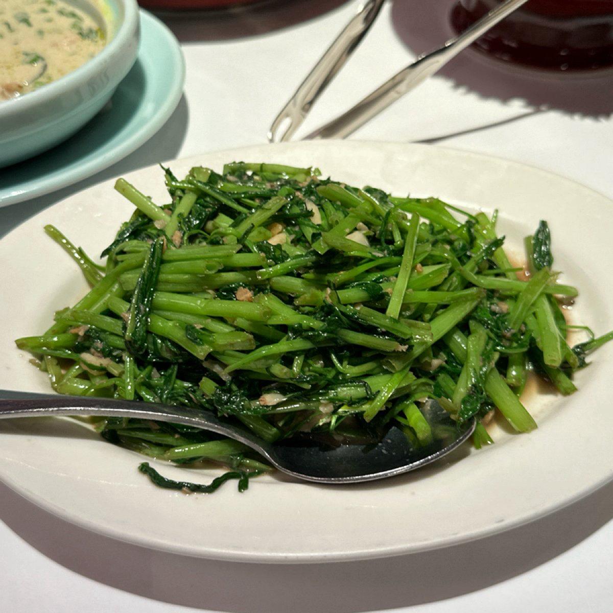 空心菜の品質は非常に良く、葉はとても鮮やかな緑色で、古い葉は食べられないほど美味しいエビペーストが人気で、シンプルですが非常においしいです。