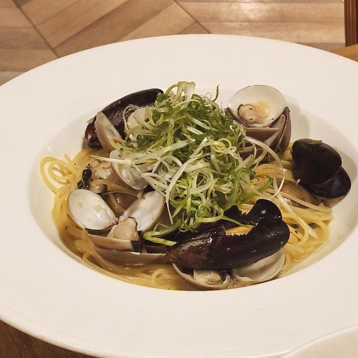 とても変わった味付けで全然美味しくなかった…ネギの千切りは乾燥していて多すぎ、海鮮部分の品質も悪く、特にアサリは小さくて全く食感がありません❌
