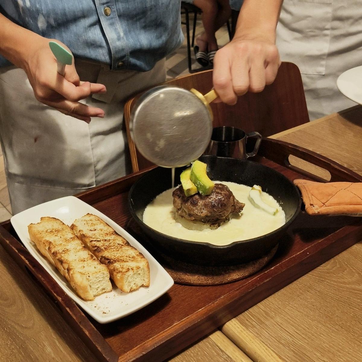 アボカドとチーズの組み合わせが苦味を感じさせ、チーズは非常に多く、パンと一緒なら大丈夫だが、単独ではしょっぱい。ハンバーグは小さく見えたが、食べごたえがあります