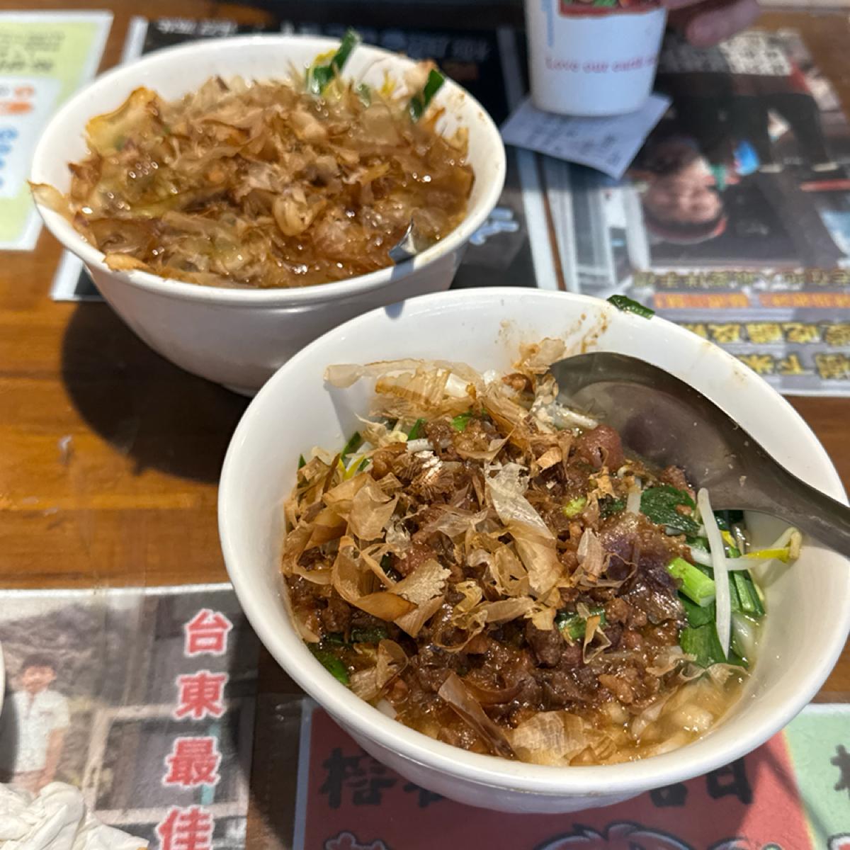 榕樹の下にあった古い店は、今やきれいに改装された店舗となり、驚かされます! 食事時間は過ぎたとはいえ、夜8時でも長蛇の列ができています。小サイズの米苔目、前菜の肉の盛り合わせ、揚げイカ団子、昔ながらの紅茶を注文しました。 米苔目にはたっぷりの鰹節が乗っていて、独特の風味があります。肉類の盛り合わせには大腸やバラ肉が含まれており、良い出来です。昔ながらの紅茶は濃厚で香り高く、一緒に試す価値があります。