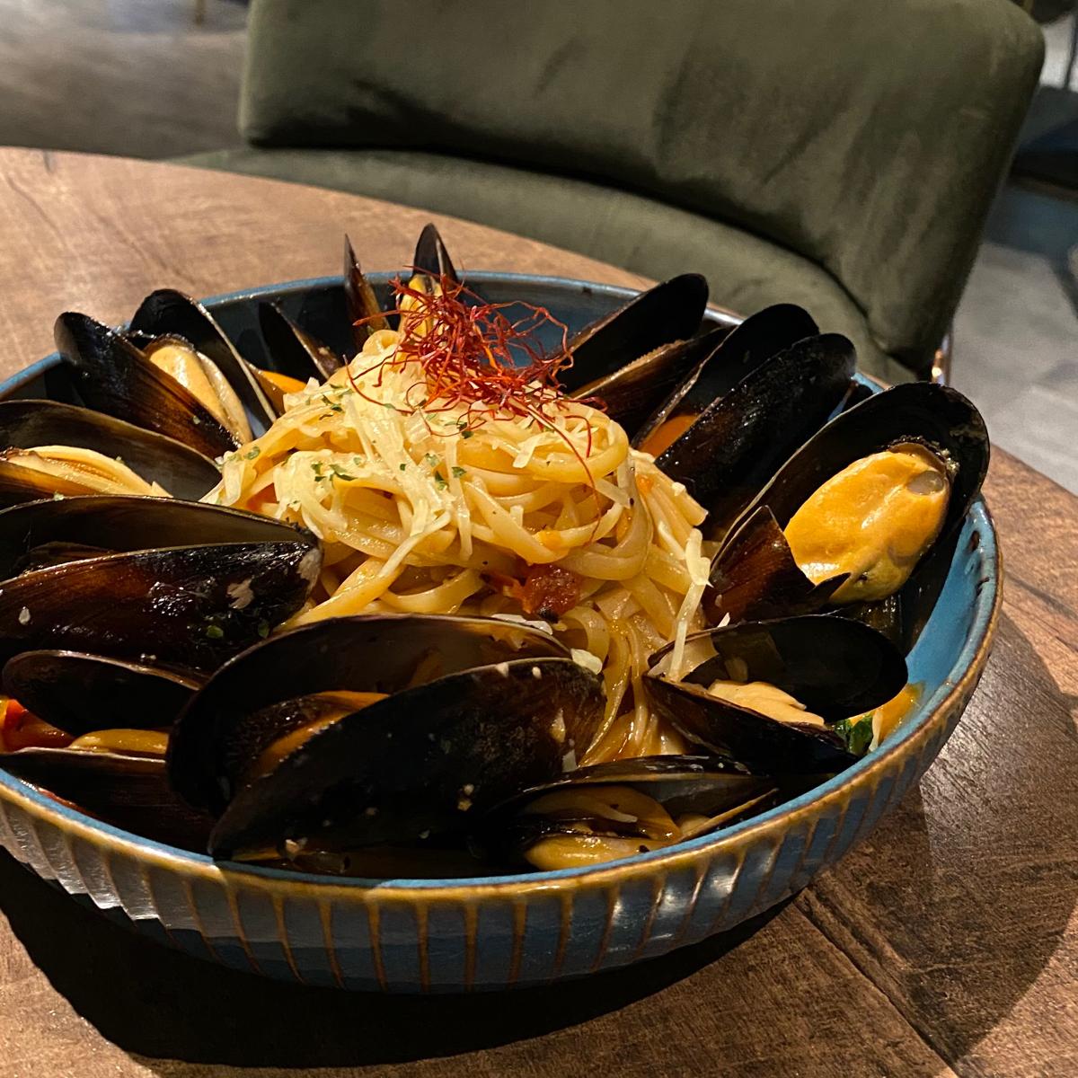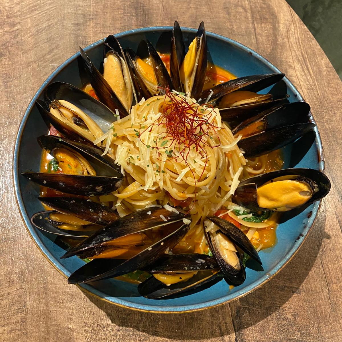 ▫️マルセイユ風トマトアンチョビ味黒ムール貝オリーブオイル細パスタ $360