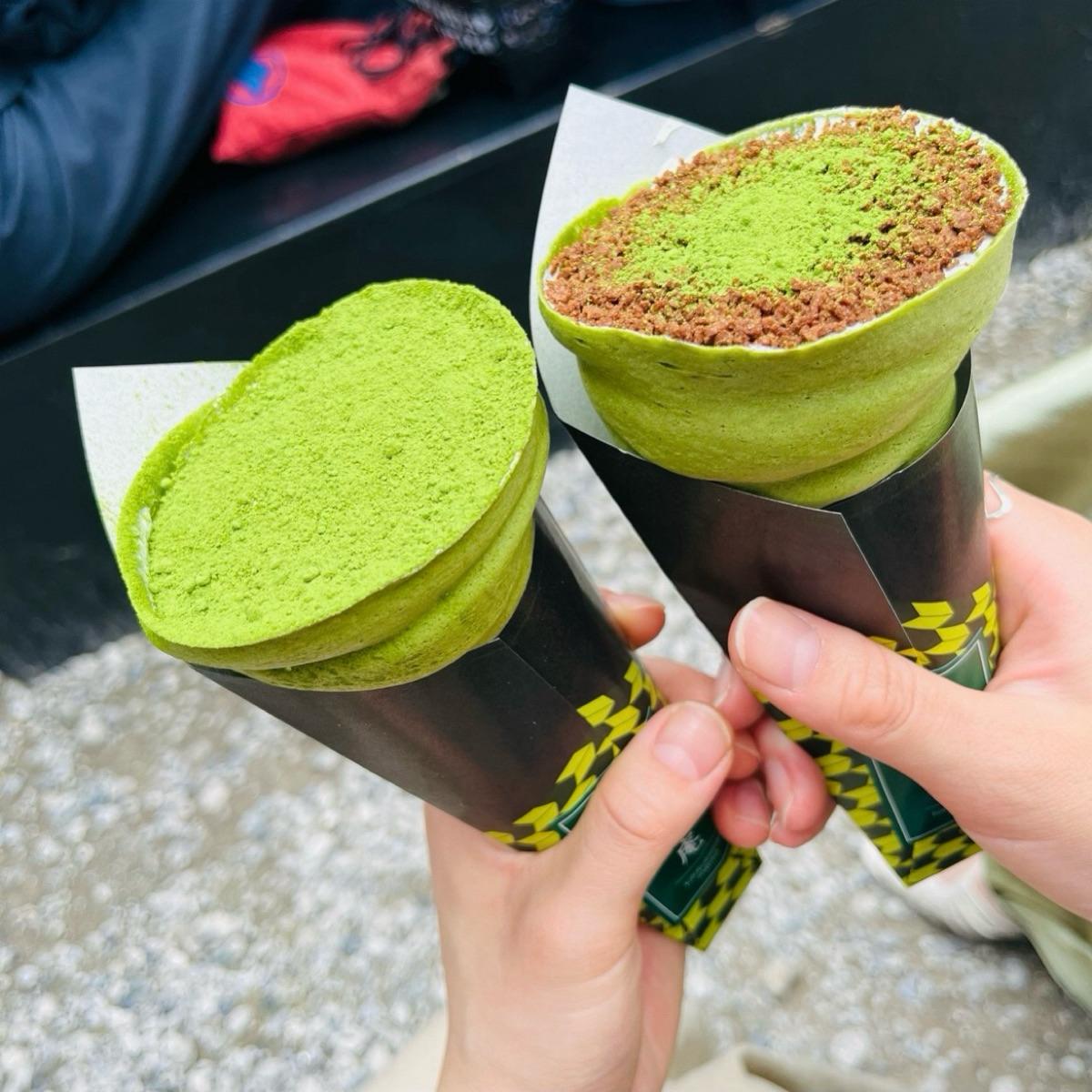 一口食べると抹茶のほろ苦さや旨みをしっかり感じられる生地でした♪抹茶クレープは約4種類ありました。