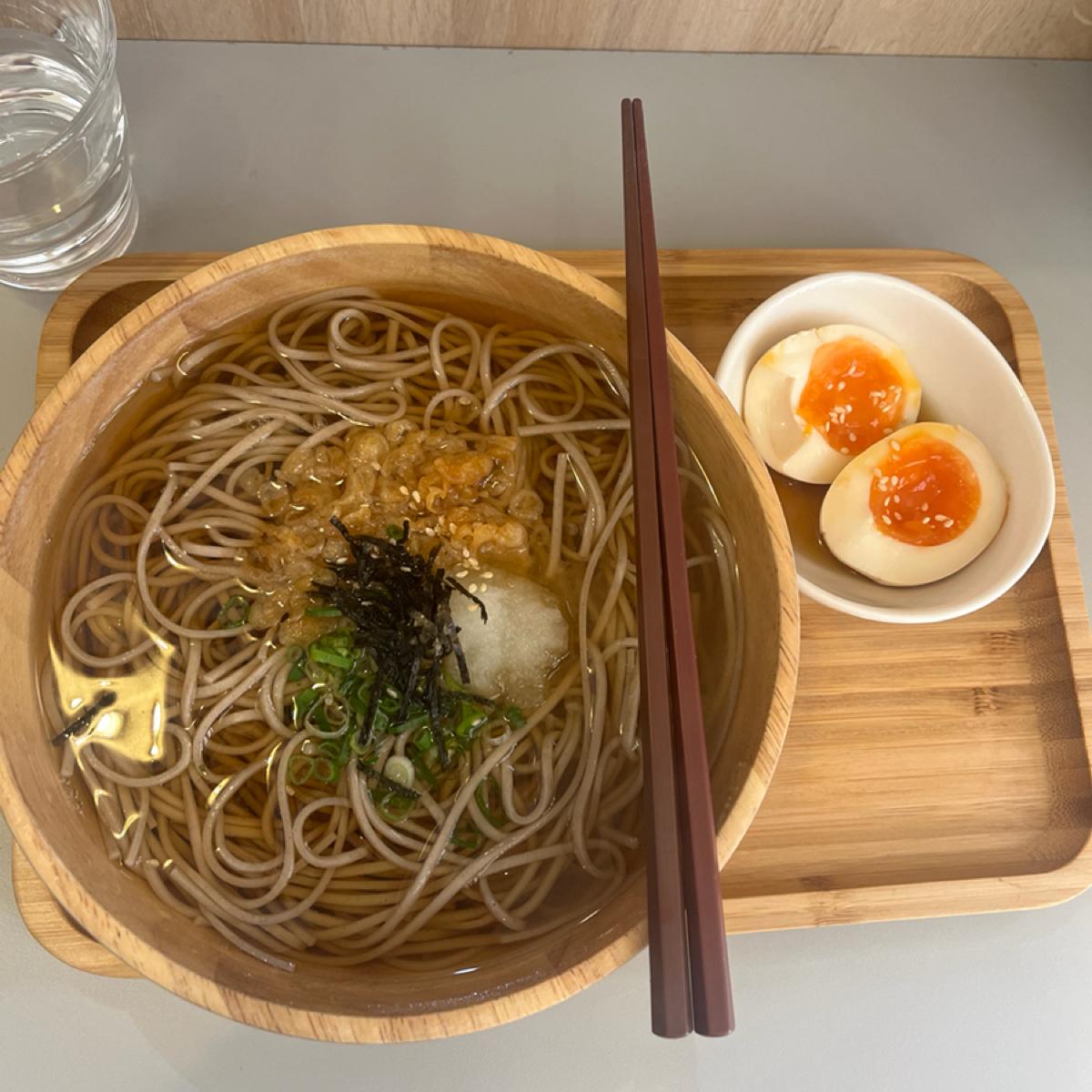 温かいそば(180):当店のそばは適度な硬さで茹でており、麺自体がモソモソせずある程度の熱を保っています。鰹出汁はお店が用意するもので、一般的な鰹出汁ほど甘辛くはありません。繊細な感じがあり、珍しくて美味しいです。