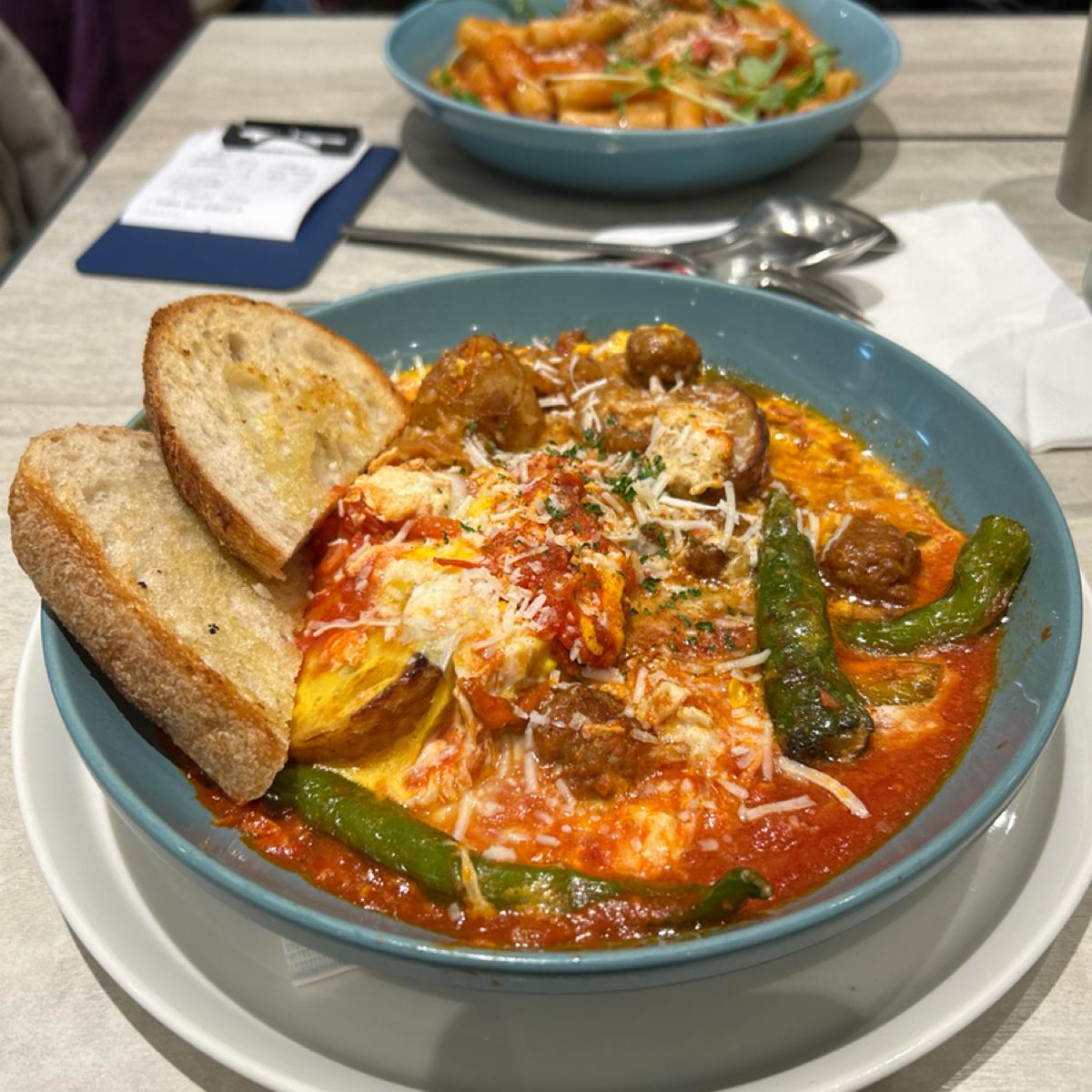 スペイン産チョリソーのミンチ、ジャガイモ、もち米ピーマン、トマトが入っており、酸味と塩味がとても食欲をそそるメニューです。