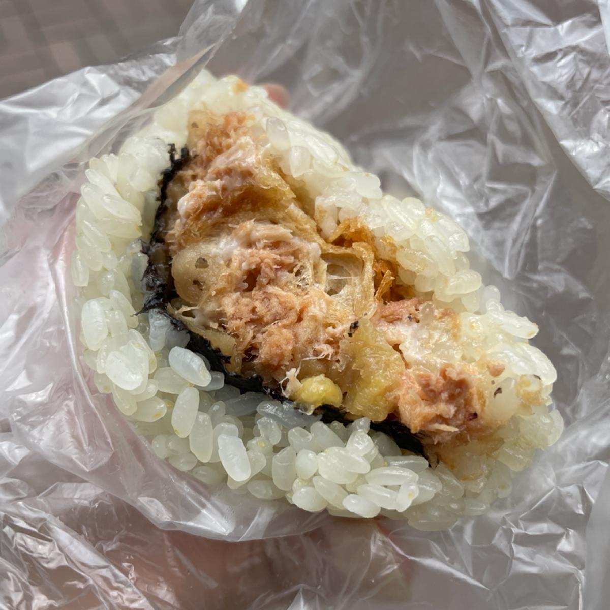 おにぎりにはツナサラダの他に、揚げた生地(ボリュームたっぷりでサクサク)と少しの保存野菜も入っており、値段相応の味です。