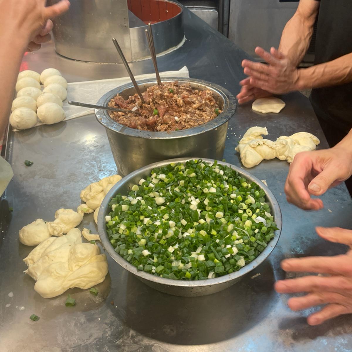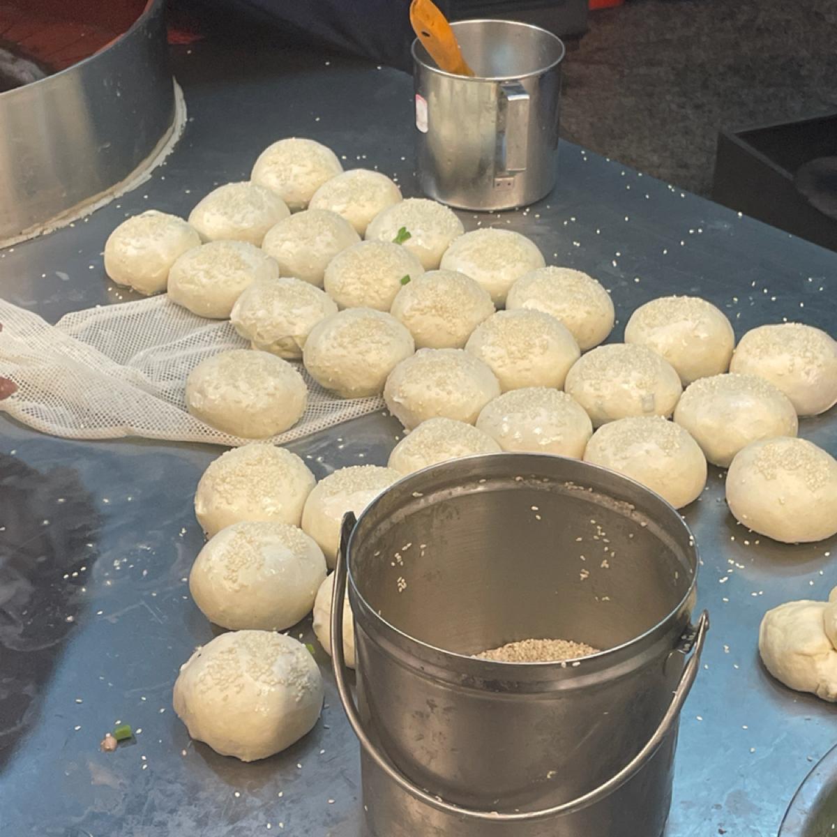 店員さんは、とても柔らかな生地に、たっぷりの肉餡をたっぷり詰めて、それから、まだ入っていない大量のネギを手際よく練り込んでいきました。窯から出てきたペッパーケーキは真っ白で、店員さんが一つ一つに白ごまをたっぷり塗ってくれてとても可愛かったです。