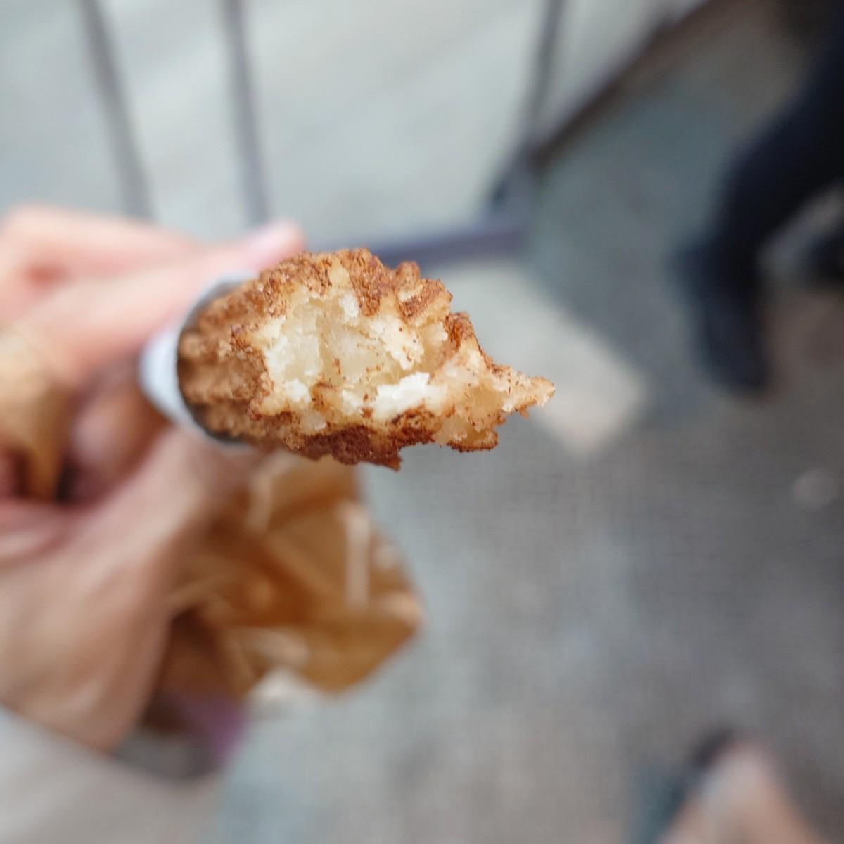 揚げたてでサクサク、シナモンパウダーも多すぎず、嫌にならない美味しいチュロスです。乾燥もしておらず、次回もまた食べたいです。