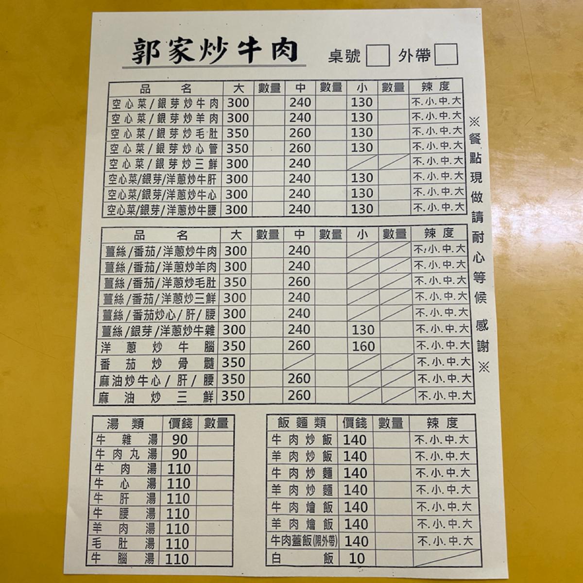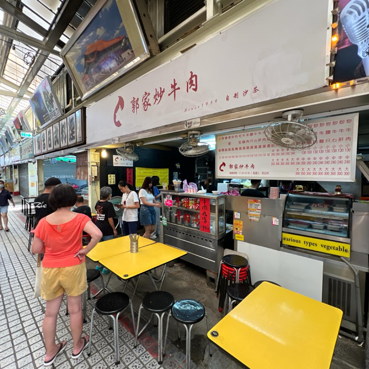 郭家の炒牛肉は、地元で80年の老舗です。店主は地元産の牛肉を使用し、自家製の沙茶を作っています。食事の時間帯には常に長蛇の列ができており、店舗内と外に座席がありますが、さほど多くはありません。外の席は冷房がないため、少し暑く感じるかもしれません。ファストフードスタイルの店ですが、アルコール類は販売していません!