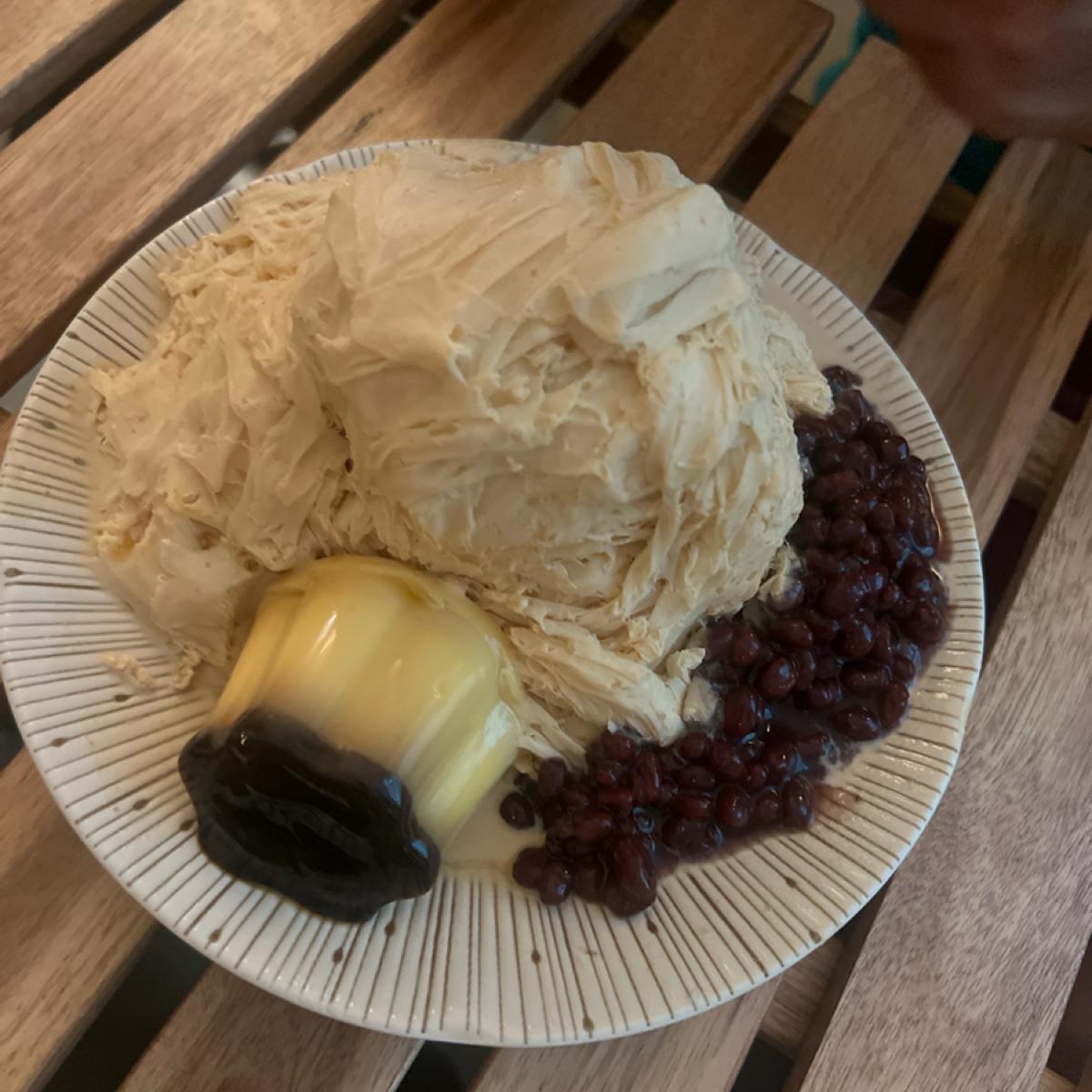 🥜 私が選んだのはピーナッツ雪花氷で、統一のプリンとあんこをトッピングしました。ピーナッツの味は濃厚で、塩気があってとても美味しいです。プリンとあんこが加わることで甘みと食感が増し、全体的にとてもバランスが取れた一杯になっています。もう一つの牛乳雪花氷には粉粿とパッションフルーツソースをトッピングしました。ミルクの香りが強く、それでも重すぎなく、酸っぱくて甘いソースと相性抜群で、粉粿の弾力感もポイントが高いです!