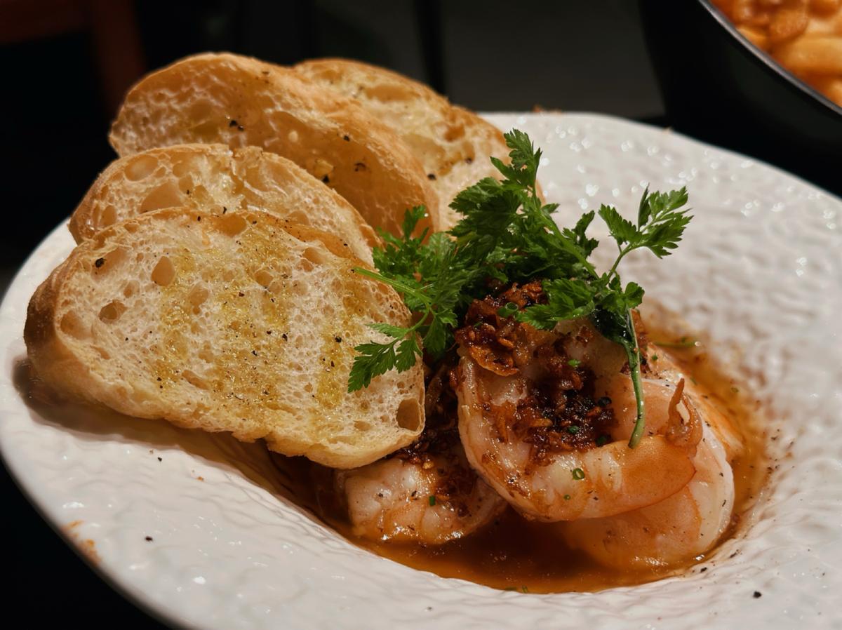 エビとニンニクの完璧な組み合わせで、カリカリのパンをソースとスープに浸して味わうと、頭の中も口の中も「おいしい」と叫びています。