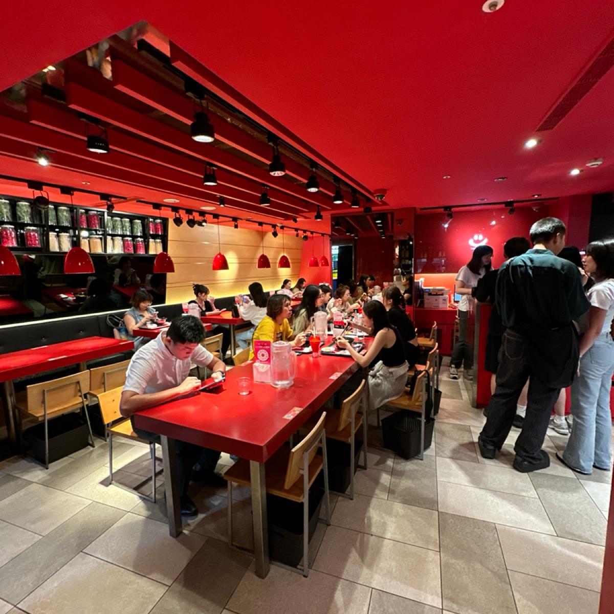 レストランは主に真っ赤な装飾が施されており、「大きな心」の存在を無視することは非常に困難です。現地で列に並ぶ必要があり、予約は提供されていません。テーブルにあるQRコードをスキャンして直接注文してください。